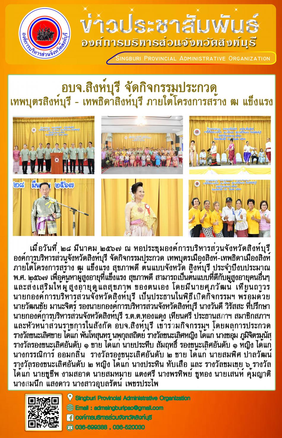 อบจ.สิงห์บุรี จัดกิจกรรมประกวด เทพบุตรสิงห์บุรี - เทพธิดาสิงห์บุรี ภายใต้ดครงการสร้าง ฒ แข็งแรง [28 มีนาคม 2567]