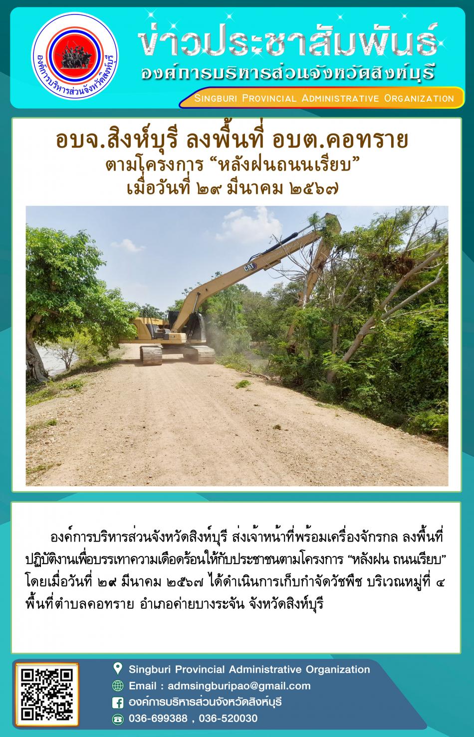 อบจ.สิงห์บุรี ลงพื้นที่ อบต.คอทราย ตามโครงการ "หลังฝน - ถนนเรียบ" [29 มีนาคม 2567]