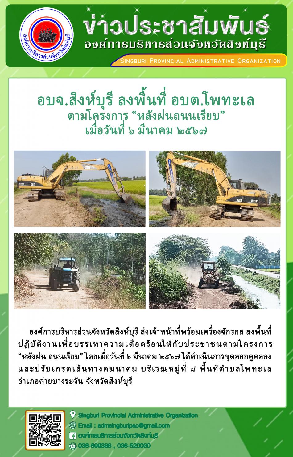 อบจ.สิงห์บุรี ลงพื้นที่ อบต.โพทะเล ตามโครงการ "หลังฝน - ถนนเรียบ" [6 มีนาคม 2567]