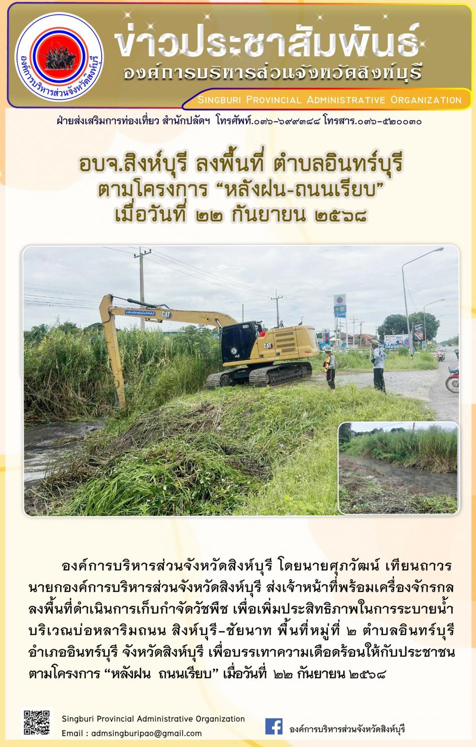อบจ.สิงห์บุรี ลงพื้นที่ ตำบลอินทร์บุรี ตามโครงการ “ หลัง ฝน- ถนนเรียบ” [22 กันยายน 2568]