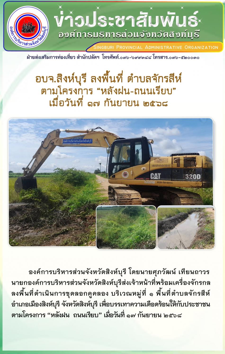อบจ.สิงห์บุรี ลงพื้นที่ ตำบลจักรสีห์ ตามโครงการ “ หลัง ฝน- ถนนเรียบ” [17 กันยายน 2568]