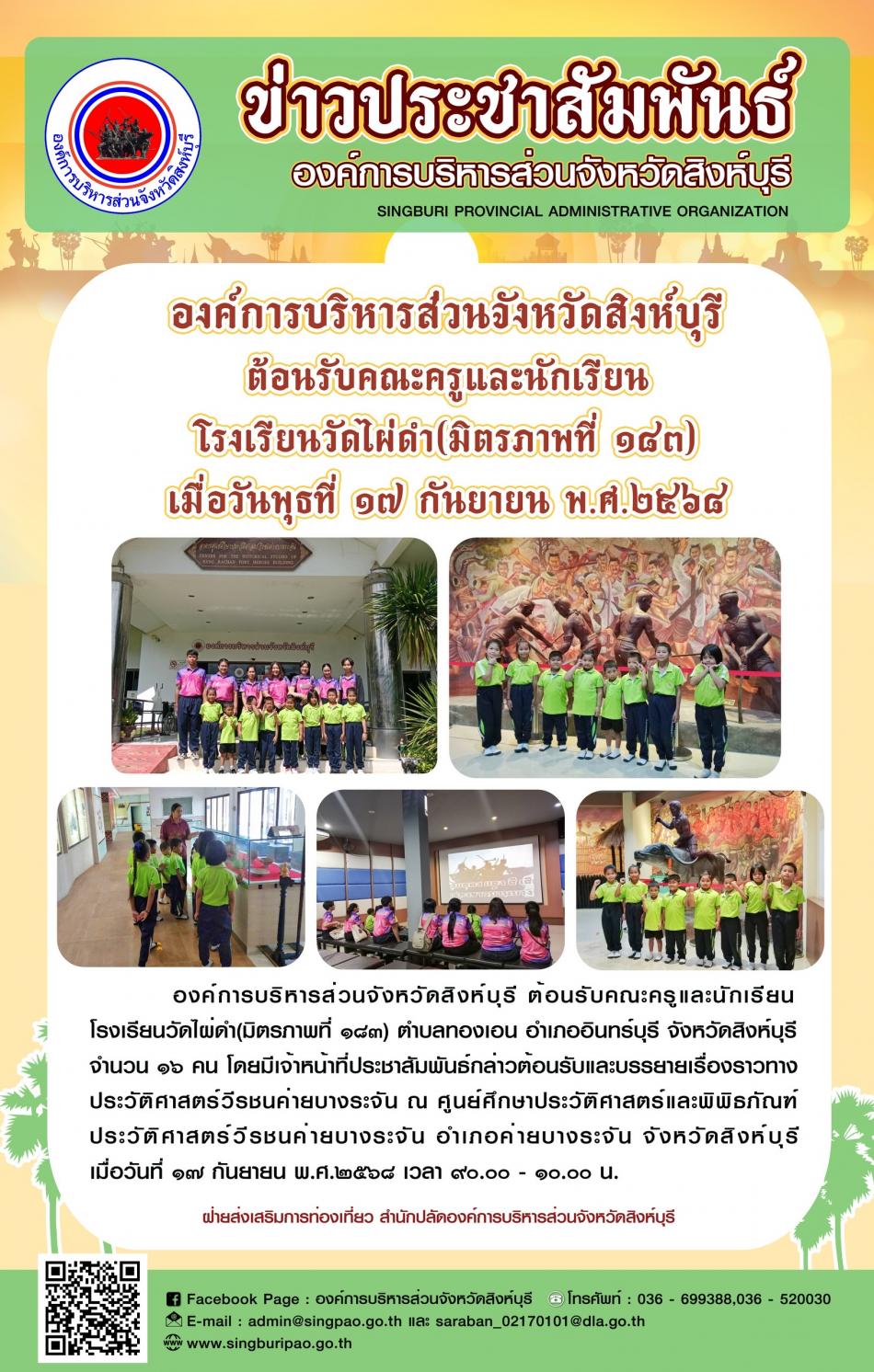 องค์การบริหารส่วนจังหวัดสิงห์บุรี ต้อนรับคณะครูและนักเรียน โรง วัดไผ่ดำ วัดไผ่ดำ(มิตรภาพที่ 183) [17 กันยายน 2568]