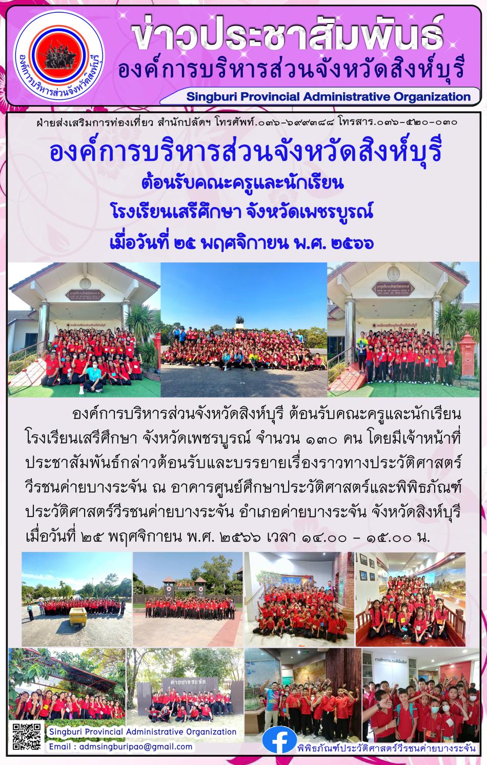 องค์การบริหารส่วนจังหวัดสิงห์บุรี ต้อนรับคณะครูและนักเรียน โรงเรียนเสรีศึกษา จังหวัดเพชรบูรณ์ [25 พฤศจิกายน 2566]