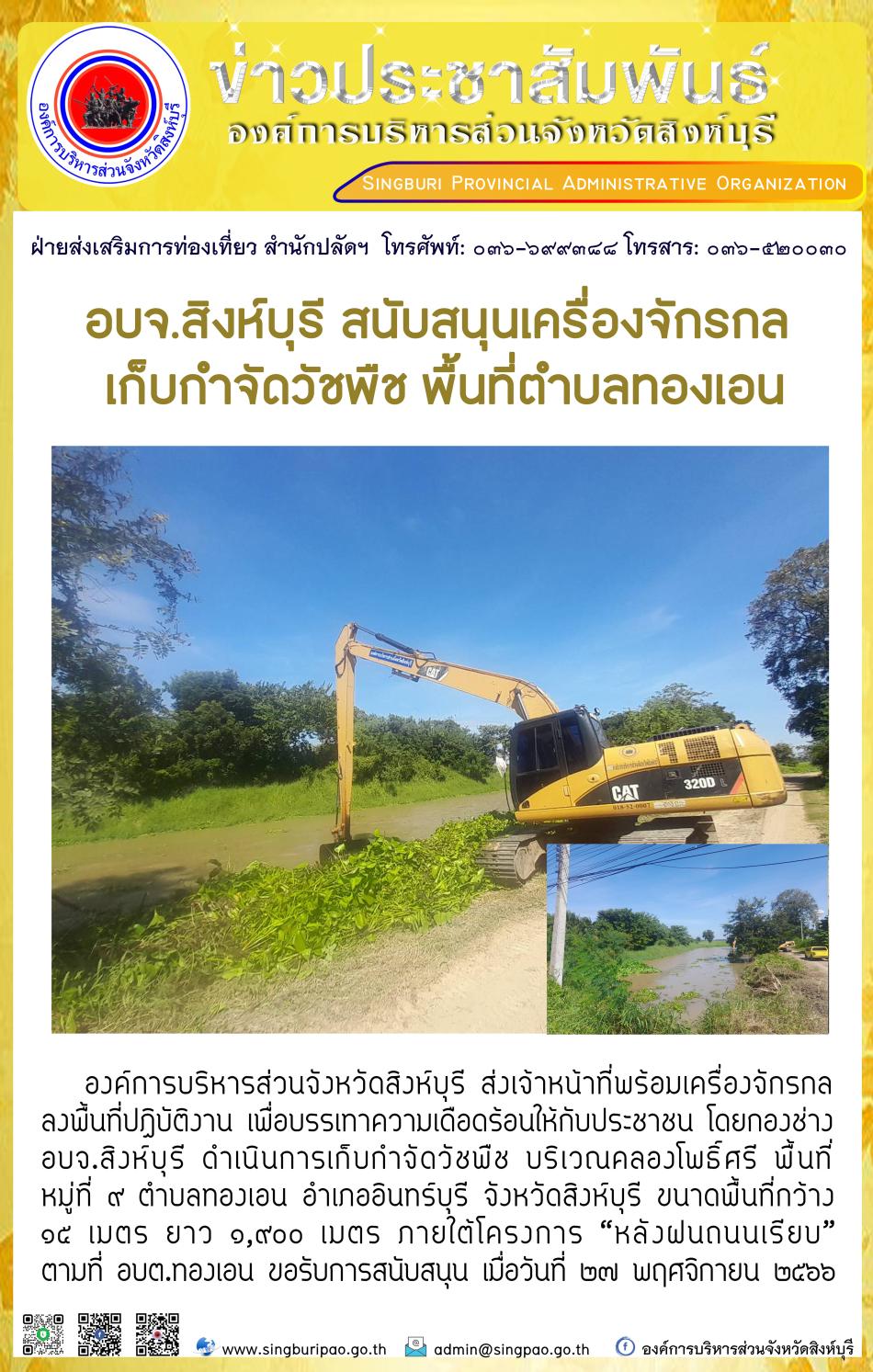 อบจ.สิงห์บุรี สนับสนุนเครื่องจักรกล เก็บกำจัดวัชพืช พื้นที่ตำบลทองเอน [27 พฤศจิกายน 2566]