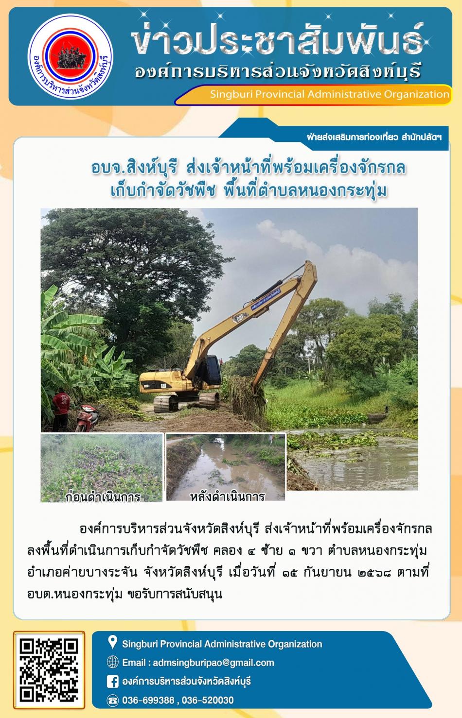อบจ. สิงห์บุรี ส่งเจ้งหน้าที่พร้อมเครื่องจักรกล เก็บกำจัดวัชพืช พื้นที่ตำบลหนองกระทุ่ม [15 กันยายน 2568]