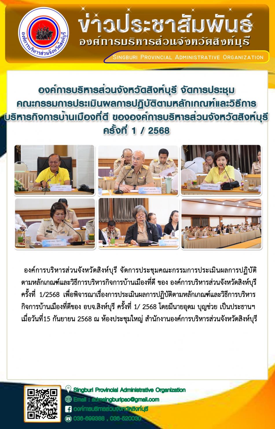 องค์การบริหารส่วนจังหวัดสิงห์บุรี จัดการประชุมคณะกรรมการประเมินผลการปฏิบัติตามหลักเกณฑ์และวิธีการบริหารกิจการบ้านเมืองที่ดี ขององค์การบริหารส่วนจังหวัดสิงห์บุรี ครั้งที่ 1/2568 [15 กันยายน 2568]