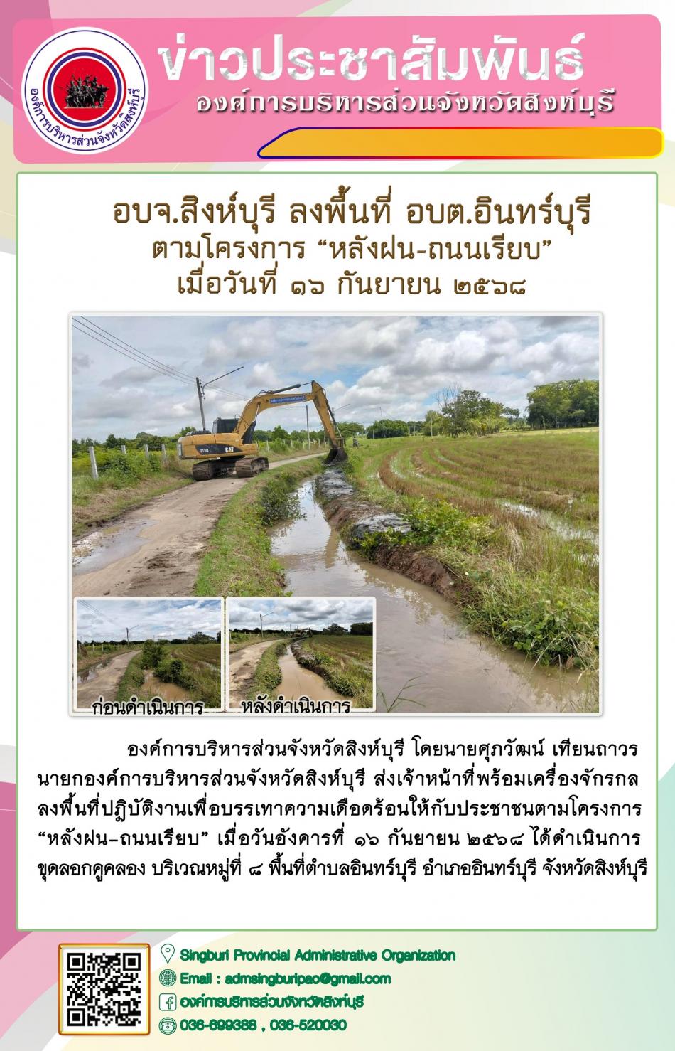 อบจ. สิงห์บุรี ลงพื้นที่ อบต.อินทร์บุรี ตามโครงการ “ หลังฝน-ถนนเรียบ”ลงพื้นที่ [16 กันยายน 2568]