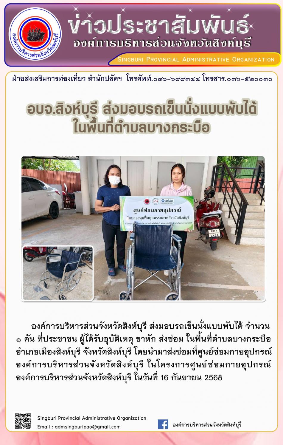 อบจ. สิงห์บุรี ส่งมอบรถเข็นแบบพับได้ ในพื้นที่ตำบลบางกระบือ [16 กันยายน 2568]