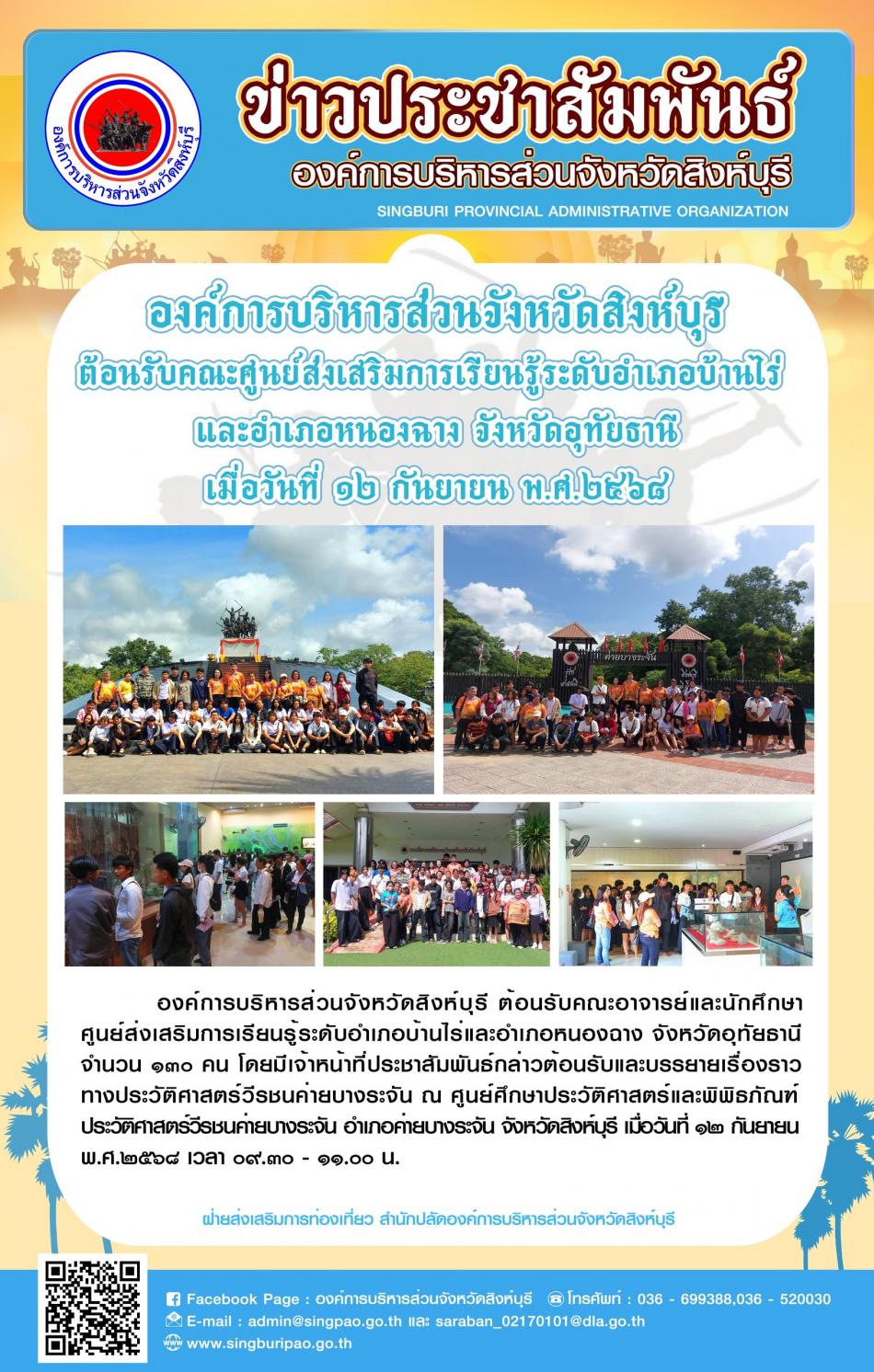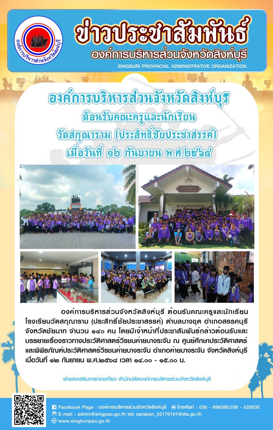 องค์การบริหารส่วนจังหวัดสิงห์บุรี ต้อนรับคณะครูและนักเรียนวัดสกุณาราม (ประสิทธิ์ชัยประชาสรรค์) [12 กันยายน 2568]