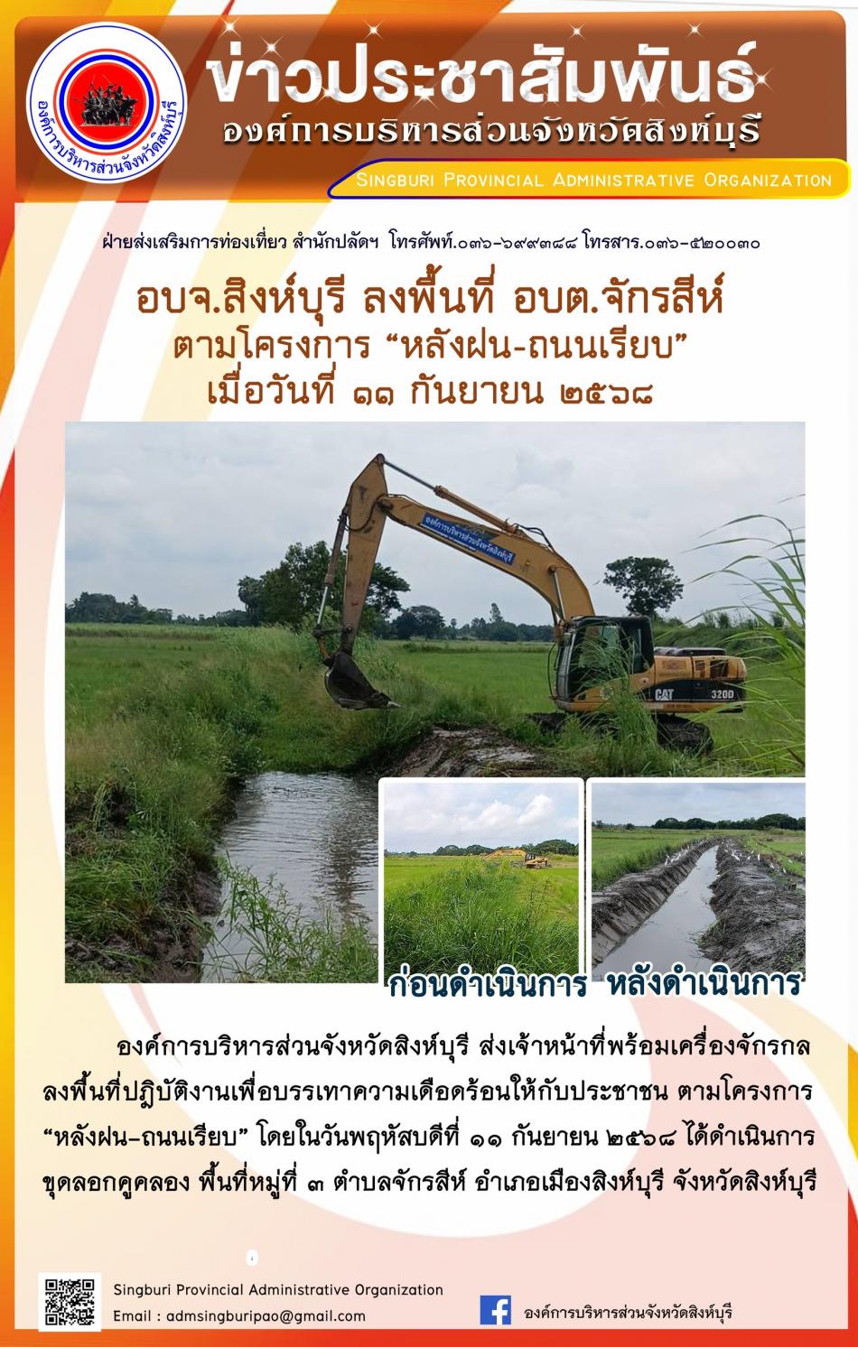 อบจ. สิงห์บุรี ลงพื้นที่ ตำบลจักรสีห์ ตามโครงการ “ หลังฝน-ถนนเรียบ” [11 กันยายน 2568]