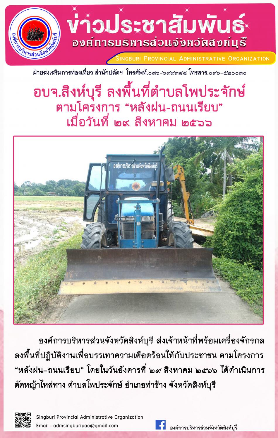 อบจ.สิงห์บุรี ลงพื้นที่อบต.โพประจักษ์ ตามโครงการ "หลังฝน - ถนนเรียบ" [30 สิงหาคม 2566]