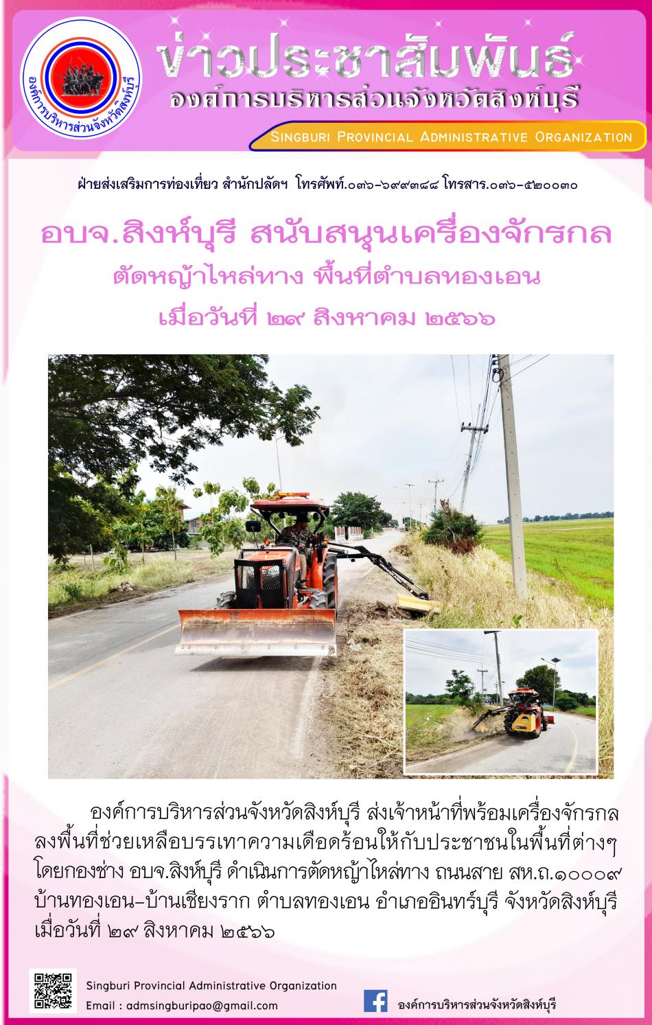 อบจ.สิงห์บุรี ส่งเจ้าหน้าที่พร้อมเครื่องจักรกล ตัดหญ้าไหล่ทาง บ.ทองเอน - บ.เซ่าสิงห์ [30 สิงหาคม 2566]