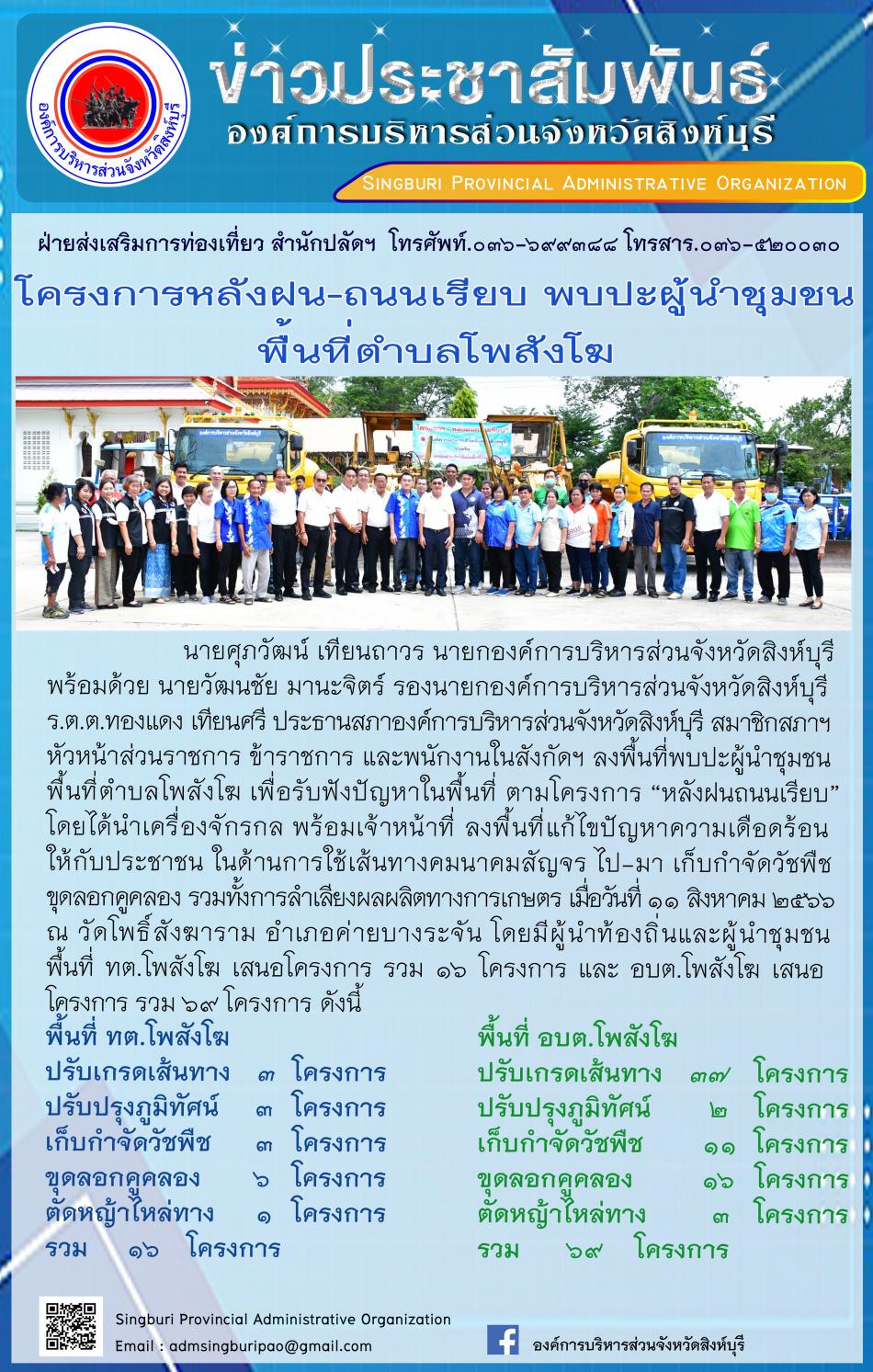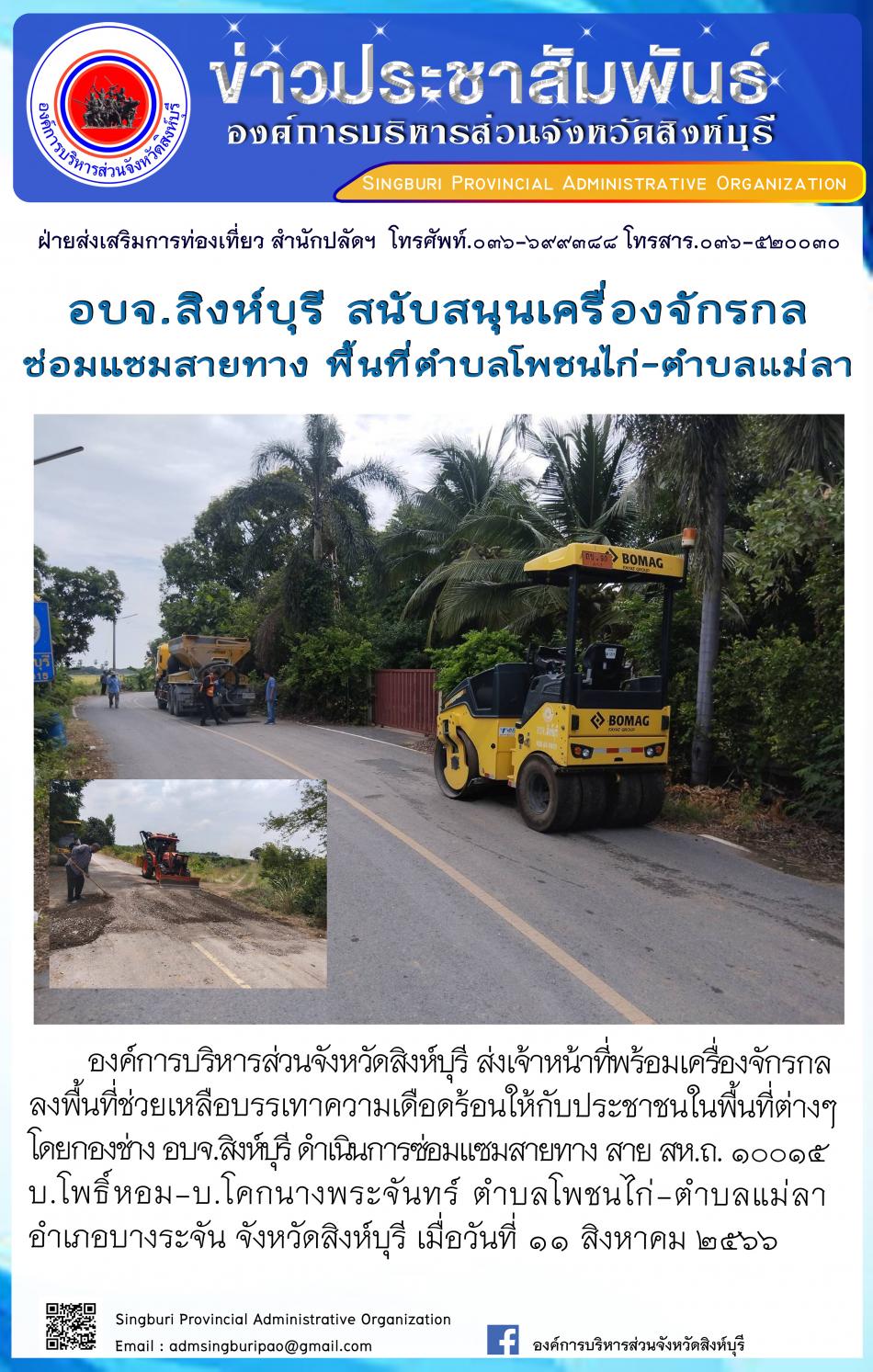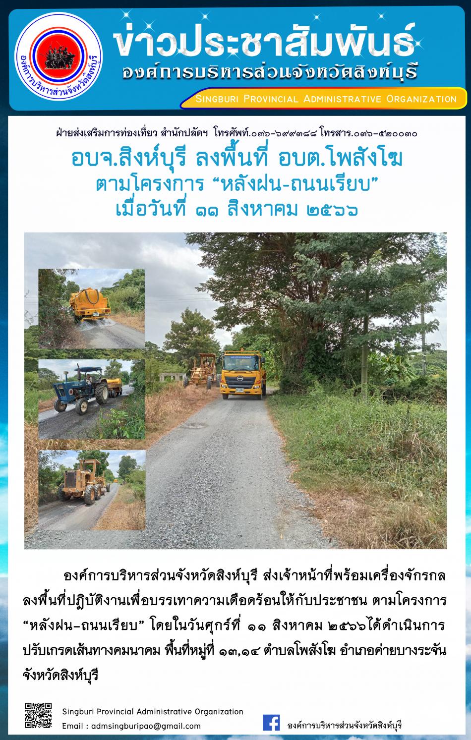 อบจ.สิงห์บุรี ลงพื้นที่ อบต. โพสังโฆ ตามโครงการ "หลังฝน - ถนนเรียบ" [11 สิงหาคม 2566]