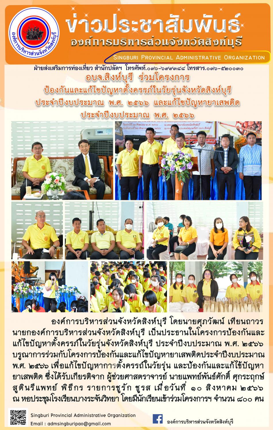 อบจ.สิงห์บุรี ร่วมดครงการป้องกันและแก้ไขปัญหาตั้งครรภ์ในวัยรุ่นจังหวัดสิงห์บุรี ประจำปีงบประมาณ พ.ศ.2566 และแก้ไขปัญหายาเสพติด ประจำปรงบประมาณ พ.ศ.2566 [10 สิงหาคม 2566]