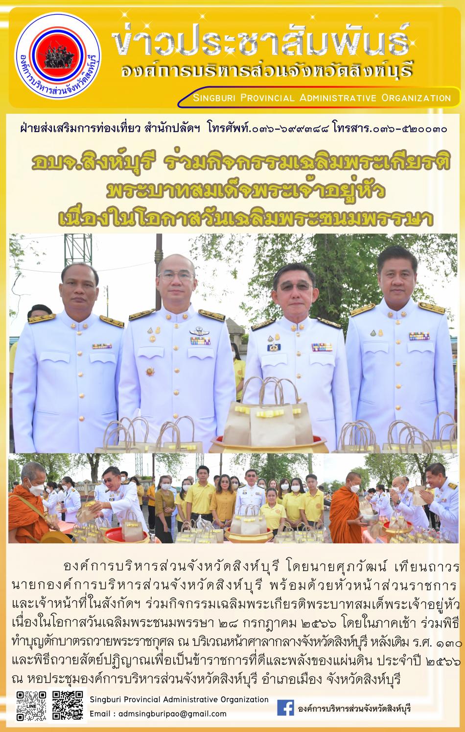 อบจ.สิงห์บุรี ร่วมกิจกรรมเฉลิมพระเกียรติพระบาทสมเด็จพระเจ้าอยู่หัวเนื่องในโอกาสวันเฉลิมพระชนมพรรษา [28 กรกฎาคม 2566]