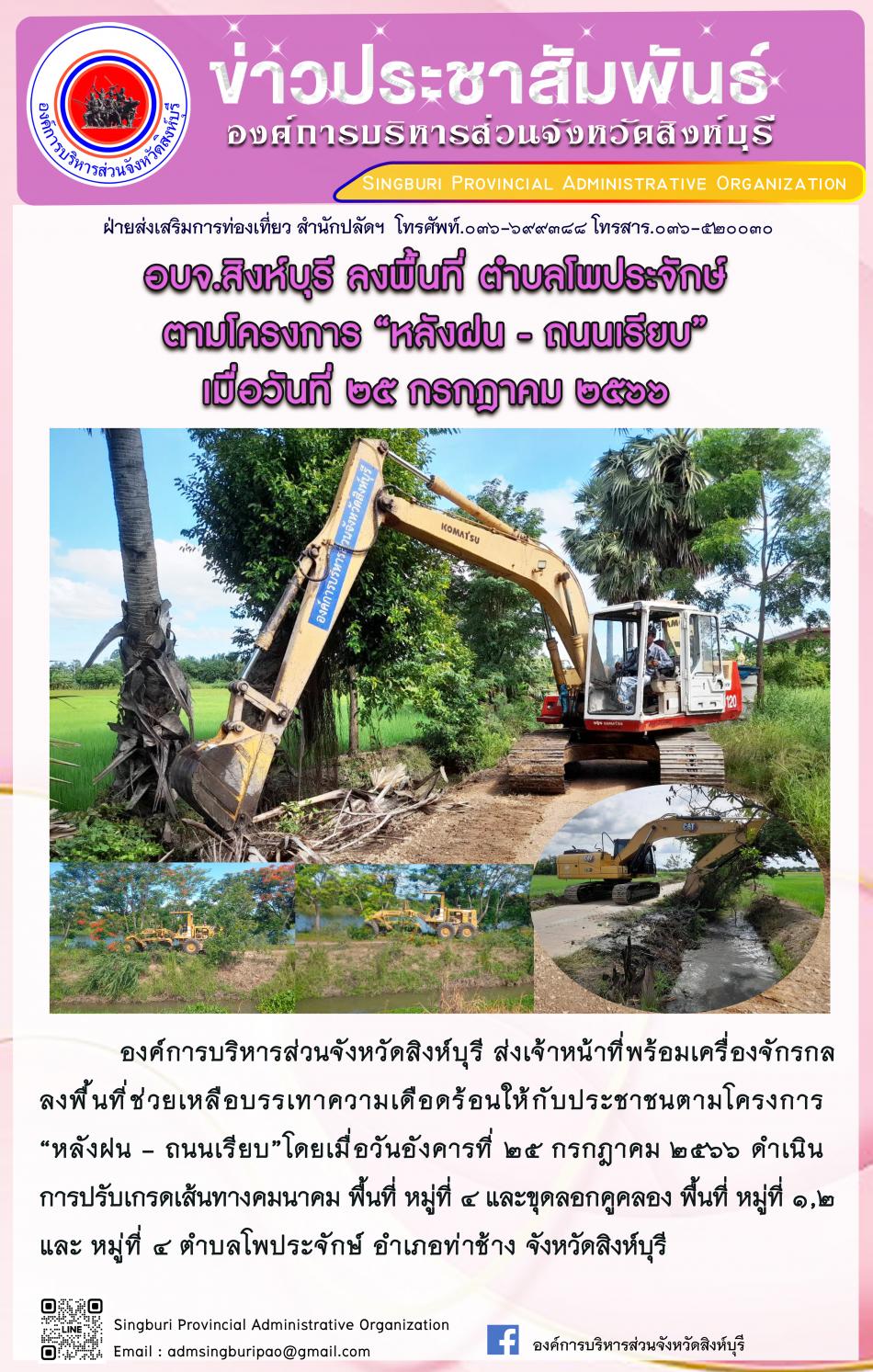 อบจ.สิงห์บุรี ลงพื้นที่ ตำบล โพประจักษ์ตามโครงการ "หลังฝน - ถนนเรียบ" [25 กรกฎาคม 2566]