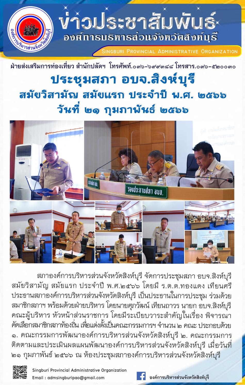 ประชุมสภา อบจ.สิงห์บุรี สมัยสามัญ สมัยที่แรก ประจำปีพ.ศ. 2566 [21 กุมภาพันธ์ 2566]