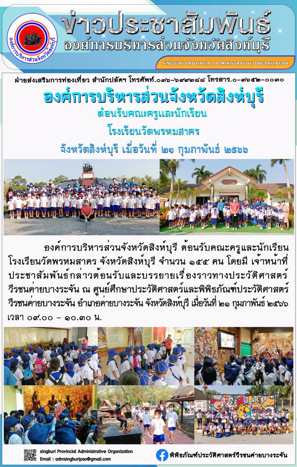 องค์การบริหารส่วนจังหวัดสิงห์บุรี ต้อนรับคณะครูและนักเรียน โรงเรียนวัดพรหมสาคร จังหวัดสิงห์บุรี [21 กุมภาพันธ์ 2566]