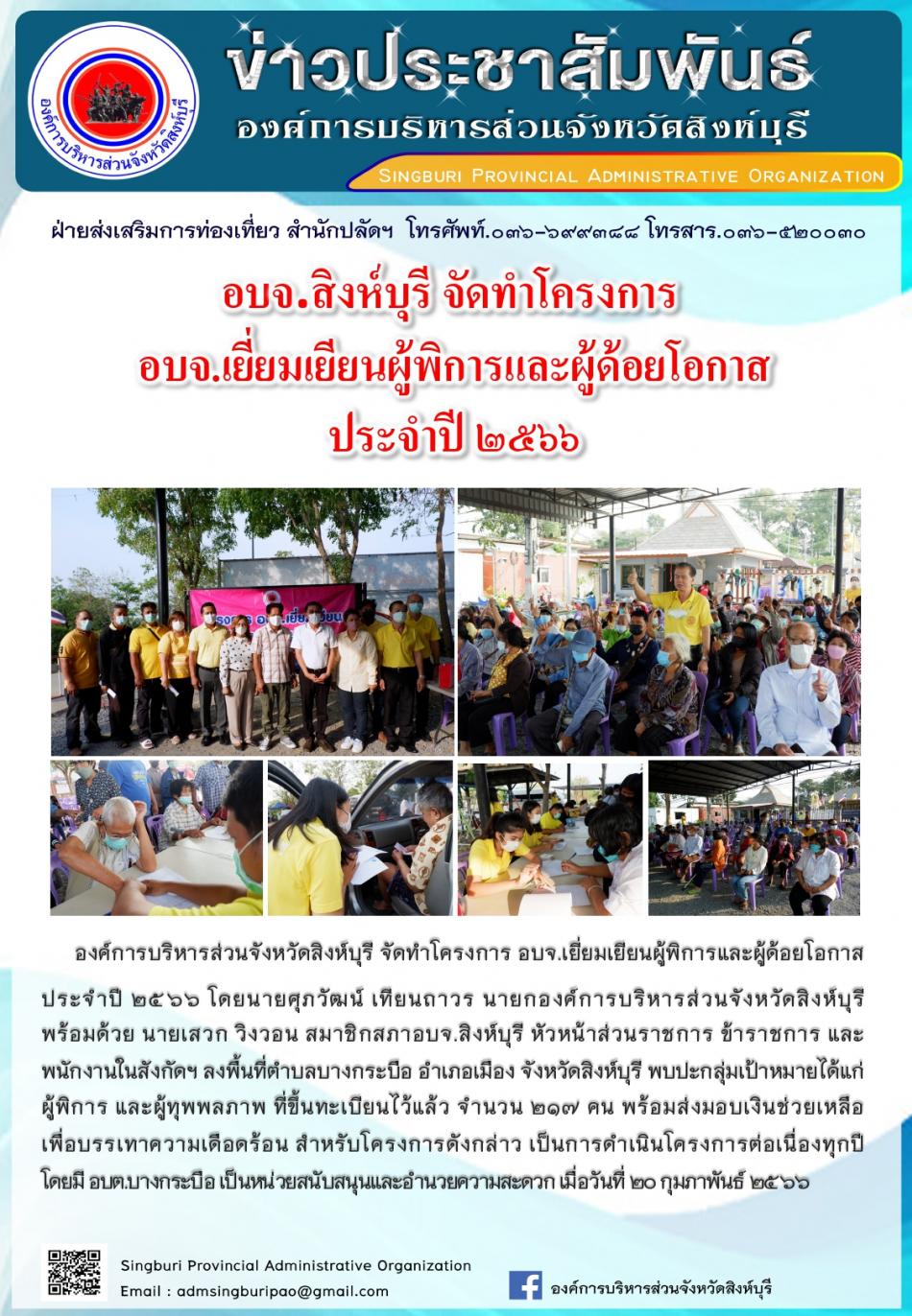 อบจ.สิงห์บุรี จัดโครงการ อบจ.เยี่ยมเยือนผุ้พิการและผู้ด้อยโอกาส ประจำปี 2566 [20 กุมภาพันธ์ 2566]