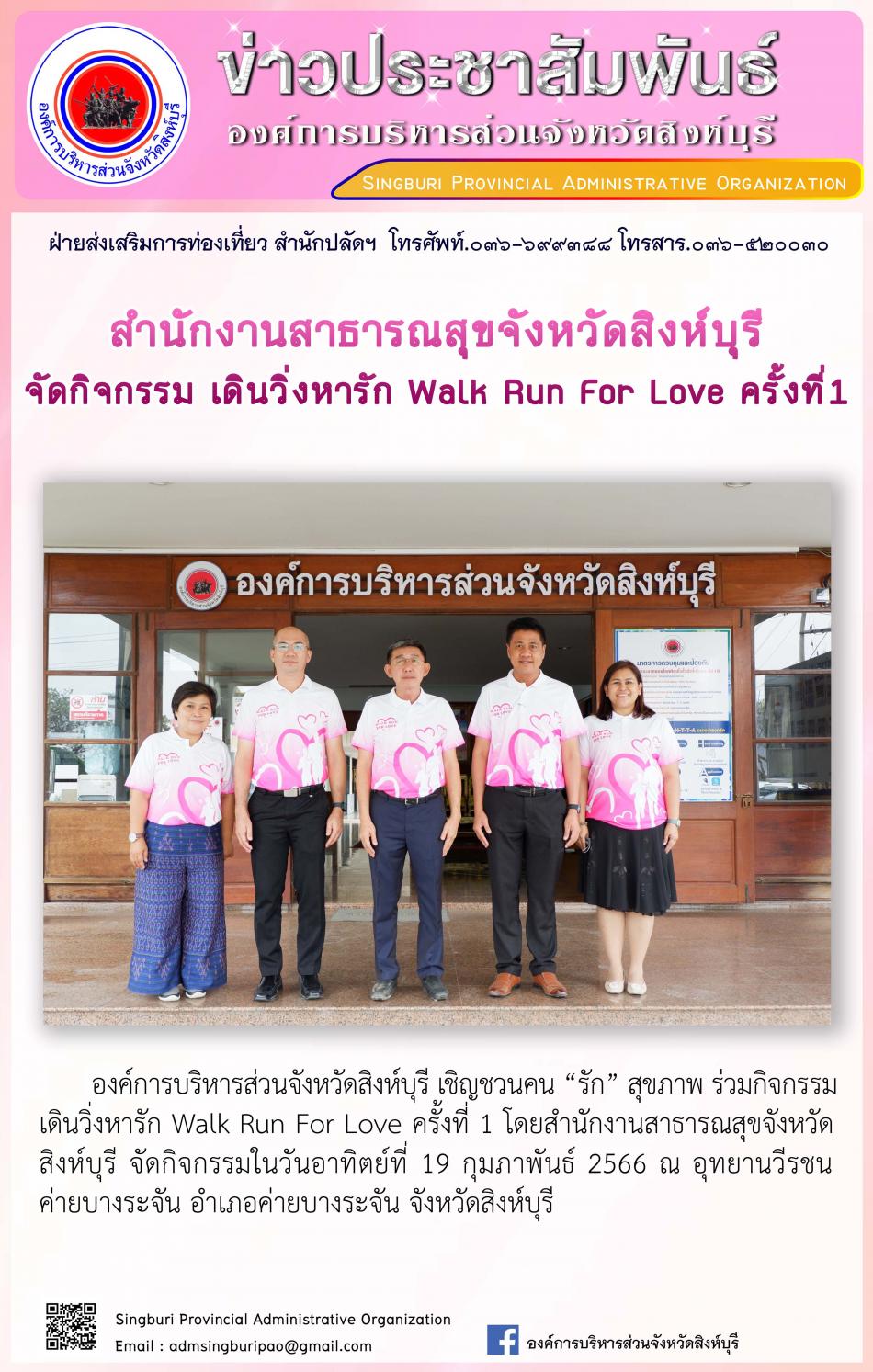 สำนักงานสาธารณสุขจังหวัดสิงห์บุรี จัดกิจกรรม เดินวิ่งหารัก Walk Run For Love ครั้งที่1 [19 กุมภาพันธ์ 2566]