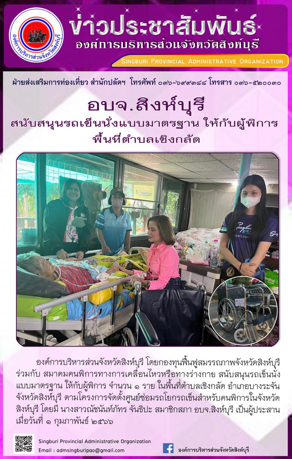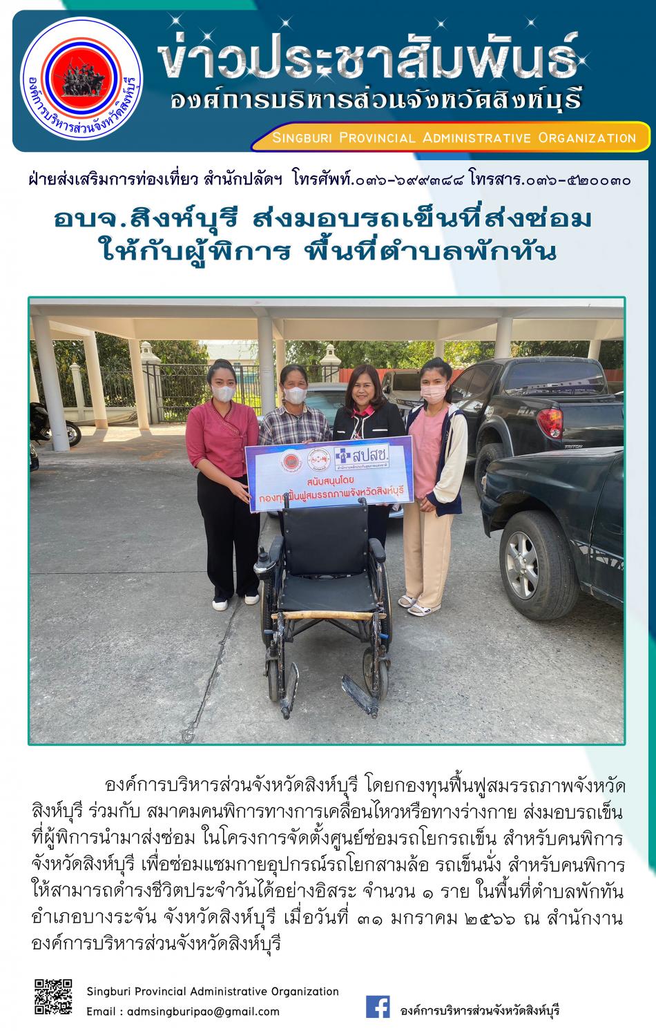 อบจ.สิงห์บุรี ส่งมอบรถเข็นนั่งที่ส่งซ่อมให้กับผู้พิการ พื้นที่ตำบลพักทัน [31 มกราคม 2566]