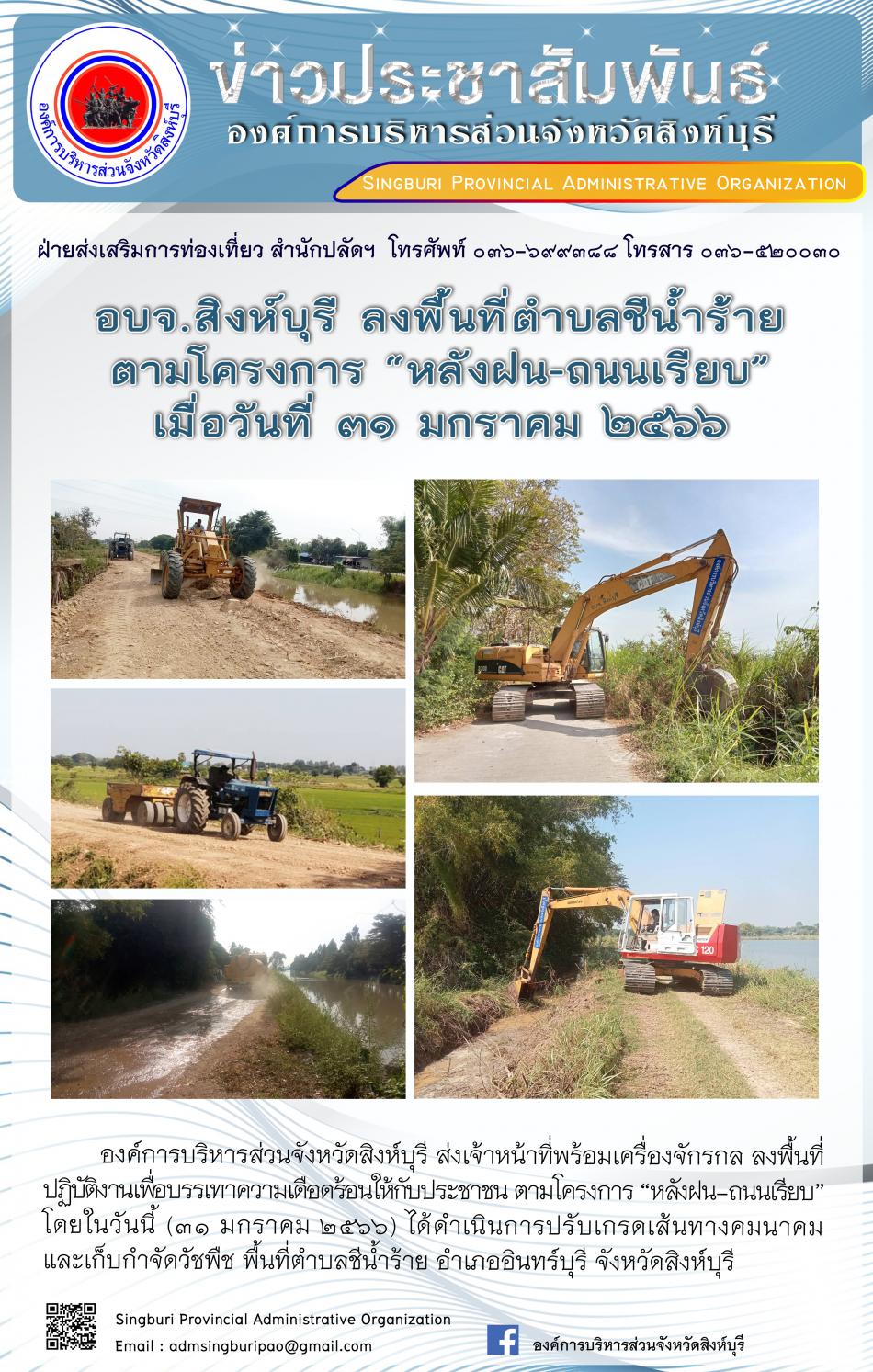 อบจ.สิงห์บุรี ลงพื้นที่ประศุกตามโครงการ "หลังฝน - ถนนเรียบ" [1 กุมภาพันธ์ 2566]