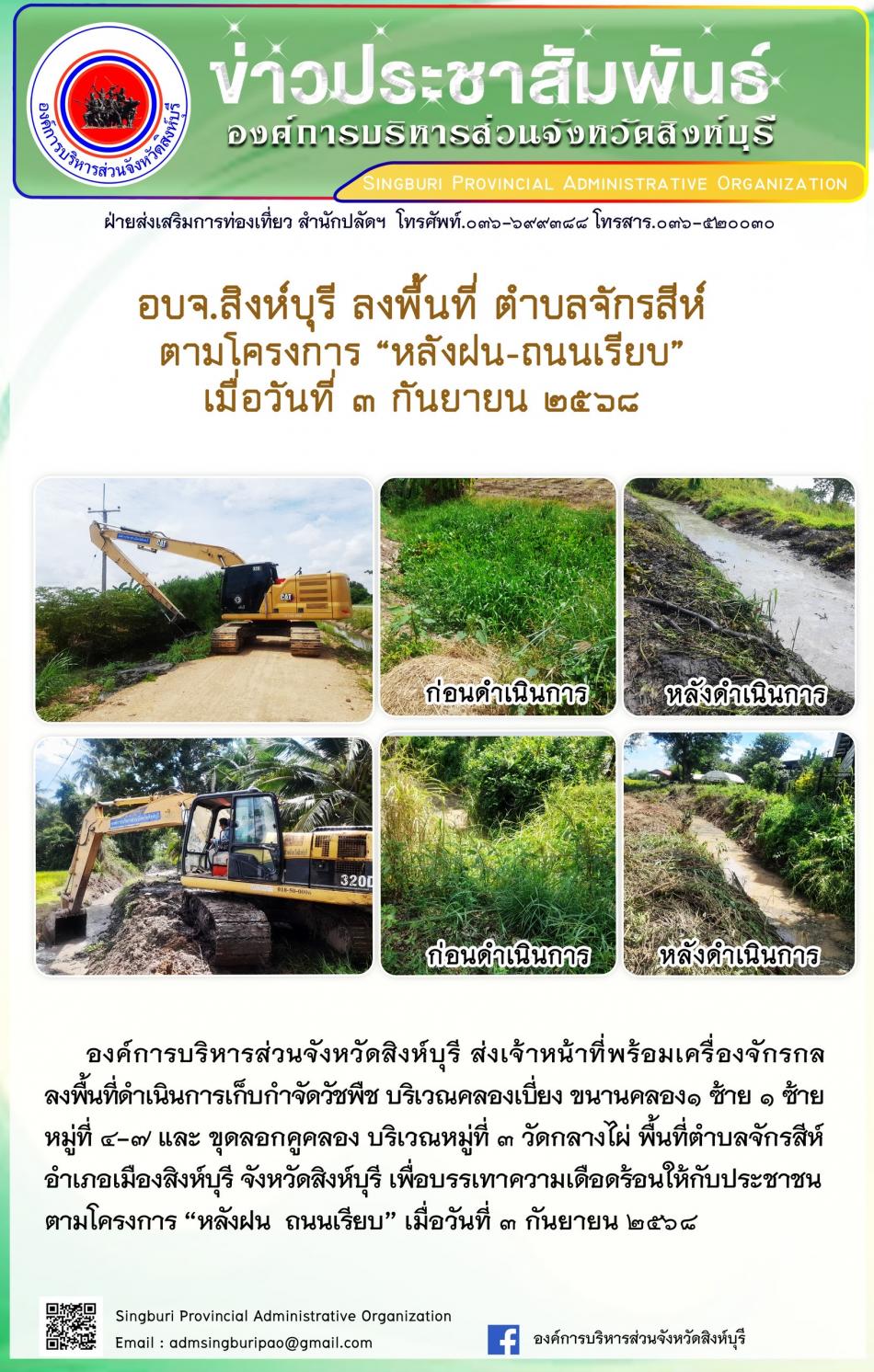 อบจ. สิงห์บุรี ลงพื้นที่ ตำบลจักรสีห์ ตามโครงการ “ หลังฝน-ถนนเรียบ” [3 กันยายน 2568]