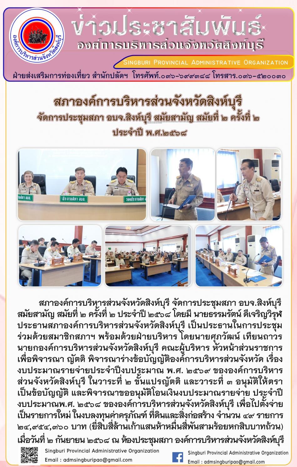 สภาองค์การบริหารส่วน การประชุมสภา อบจ. สิงห์บุรี สมัยสามัญ สมัยที่2 ประจำปีพ.ศ. 2568 [2 กันยายน 2568]