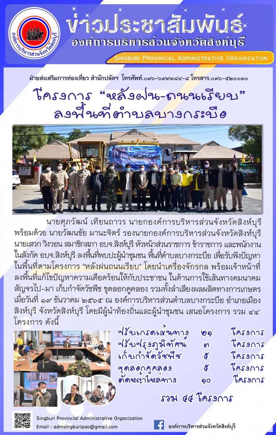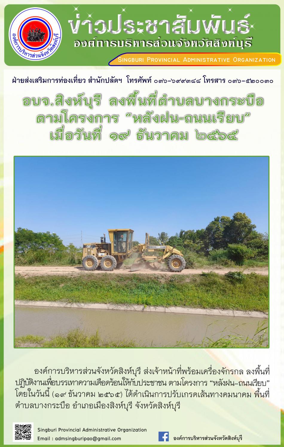 อบจ.สิงห์บุรี ลงพื้นที่ตำบลบางกระบือตามโครงการ"หลังฝน-ถนนเรียบ" [19 ธันวาคม 2565]