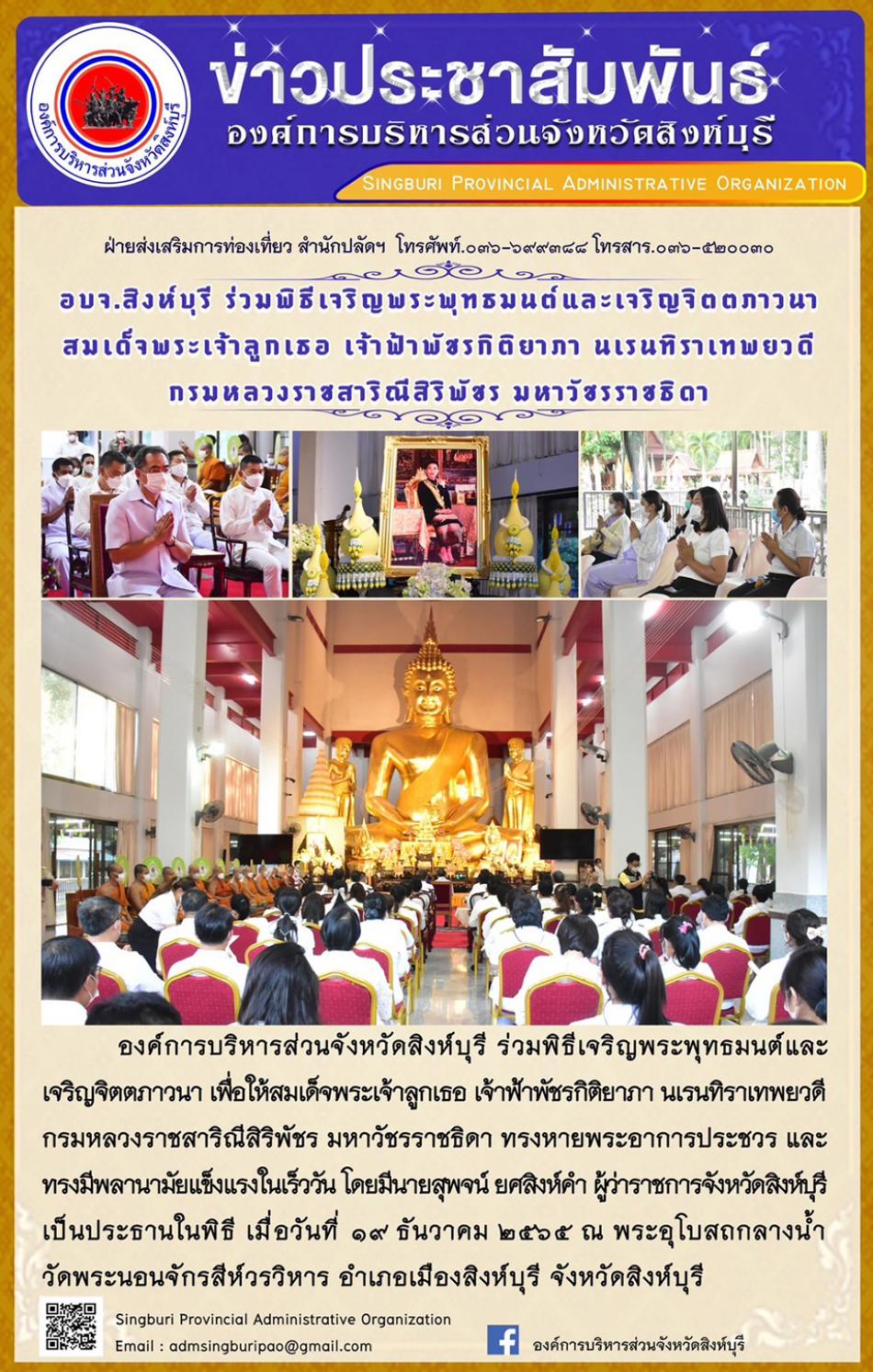อบจ.สิงห์บุรี ร่วมพิธีเจริญพระพุทธมนต์และเจริญจิตตภาวนา สมเด็จพระเจ้าลูกเธอ เจ้าฟ้าพัชรกิติยาภา นเนทราเทพยวดี กรมหลวงราชสาริณีสิริพัชร มหาวัชชราชธิดา [19 ธันวาคม 2565]