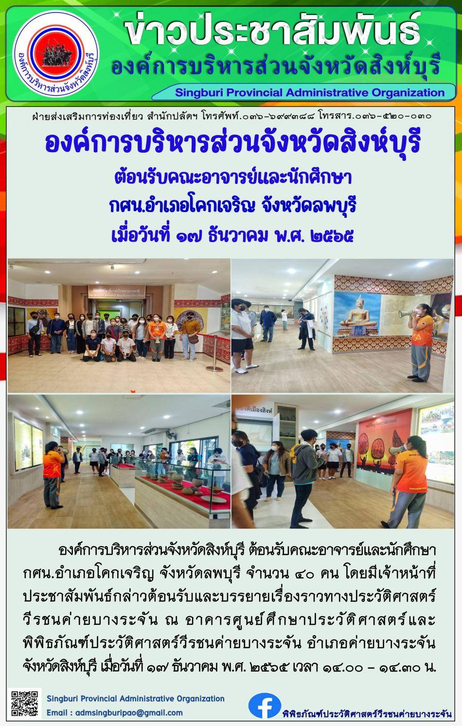 องค์การบริหารส่วนจังหวัดสิงห์บุรี ต้อนรับคณะอาจารย์และนักศึกษา กศน.อำเภอโคกเจริญ จังหวัดลพบุรี [17 ธันวาคม 2565]