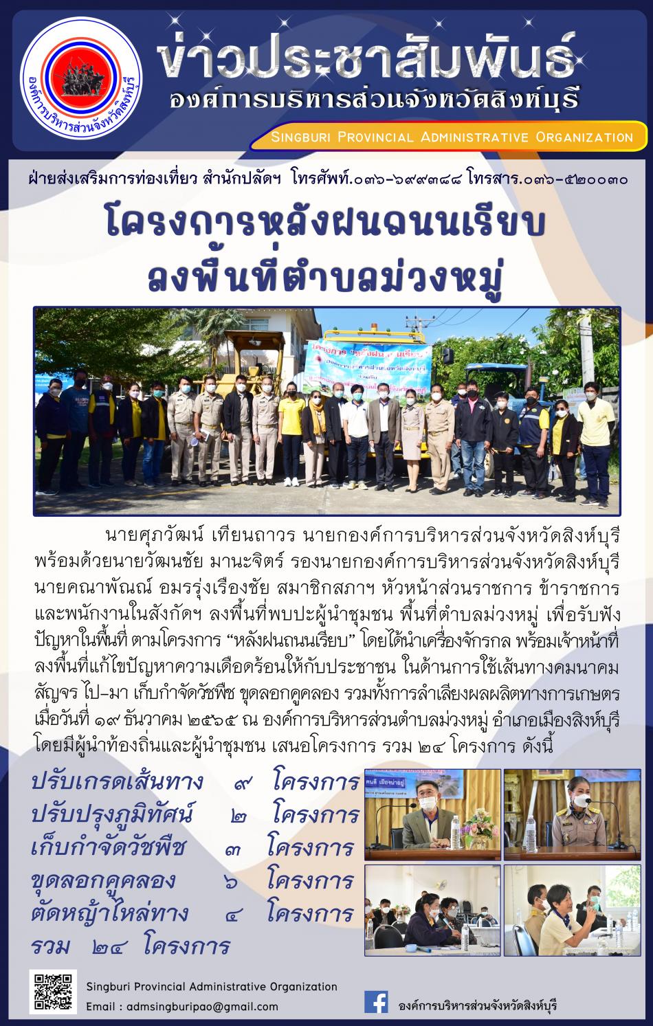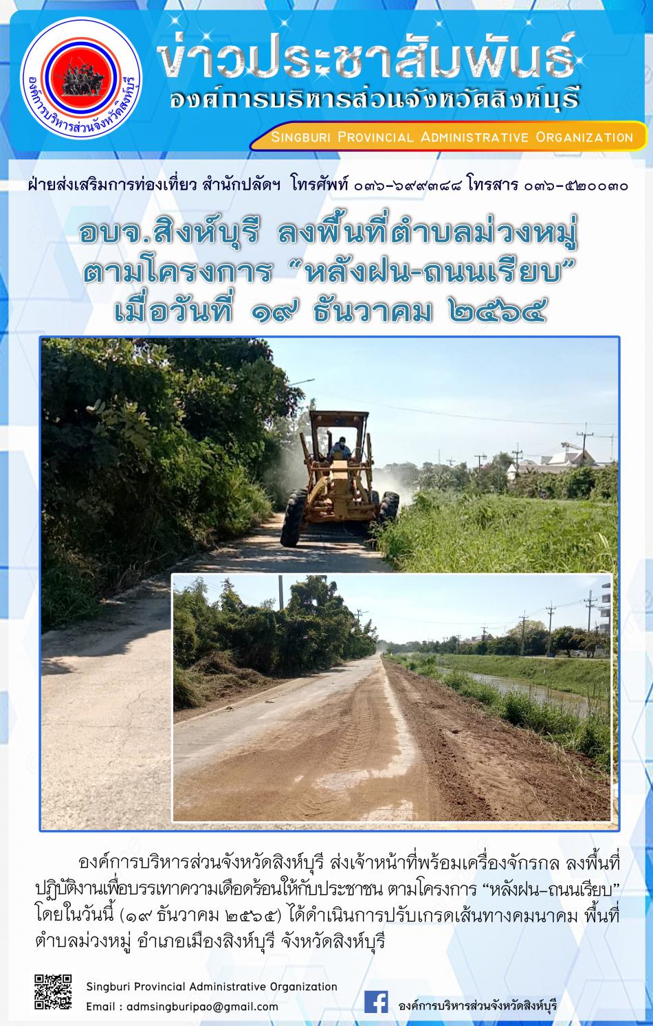 อบจ.สิงห์บุรี ลงพื้นที่ตำบลม่วงหมู่ตามโครงการ"หลังฝน-ถนนเรียบ" [19 ธันวาคม 2565]