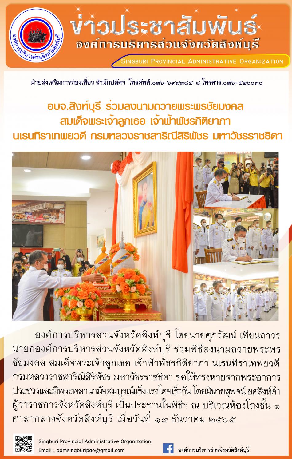 อบจ.สิงห์บุรี ร่วมลงนามถวายพระพรชัยมงคล สมเด็จพระเจ้าลูกเธอ เจ้าฟ้าพัชรกิติยาภานเรนทิราเทพยวดี กรมหลวงราชสาริณีสิริพัช มหาวัชรราชธิา [19 ธันวาคม 2565]