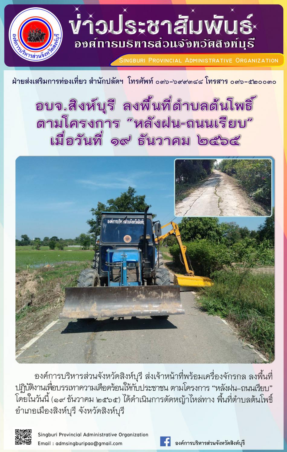 อบจ.สิงห์บุรี ลงพื้นที่ตำบลต้นโพธิ์ตามโครงการ"หลังฝน-ถนนเรียบ" [19 ธันวาคม 2565]