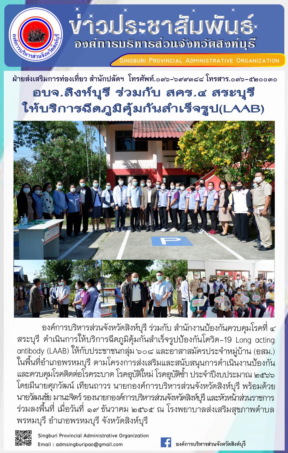 อบจ.สิงห์บุรี ร่วมกับ สคร.4สระบุรี ให้บริการฉีดภูมิกันสำเร็จรูป(LAAB) [19 ธันวาคม 2565]