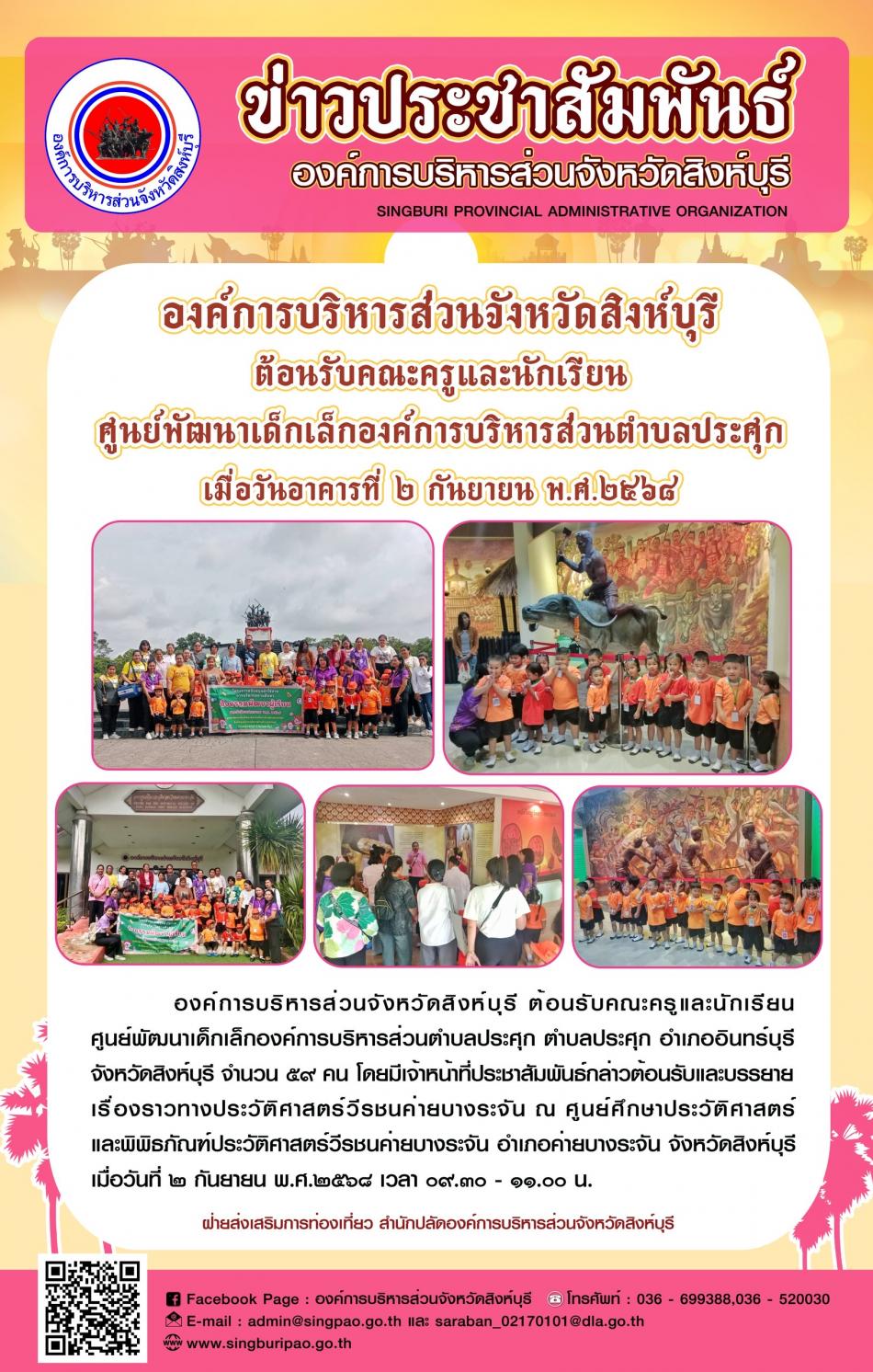 องค์การบริหารส่วนสิงห์บุรี ต้อนรับคณะครูและนักเรียนศูนย์พัฒนาเด็กเล็กองค์การบริหารส่วนตำบลปรศุะก [1 กันยายน 2568]