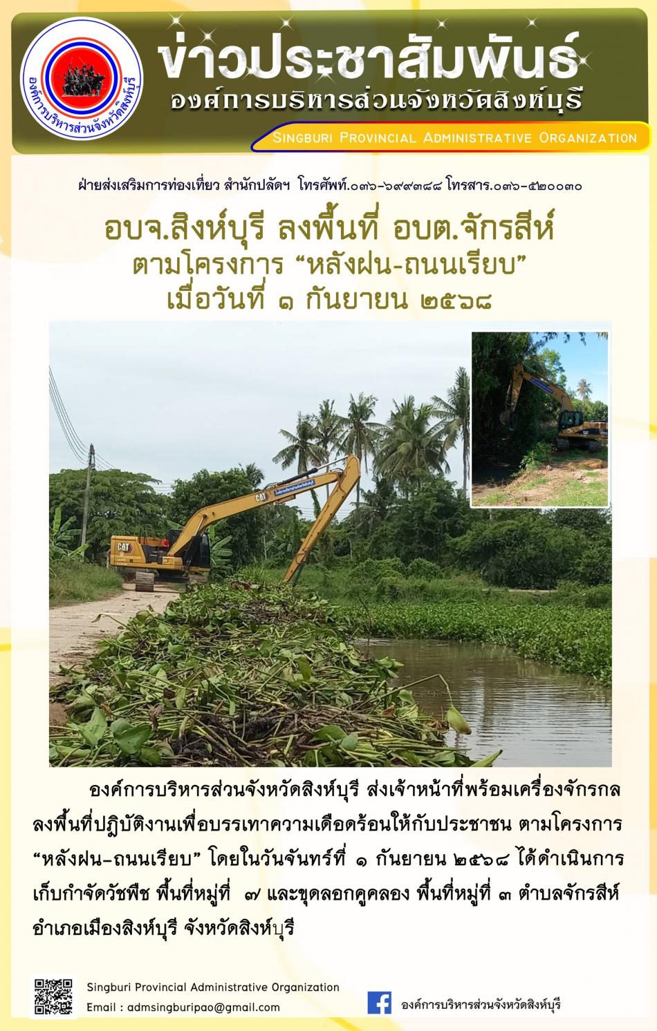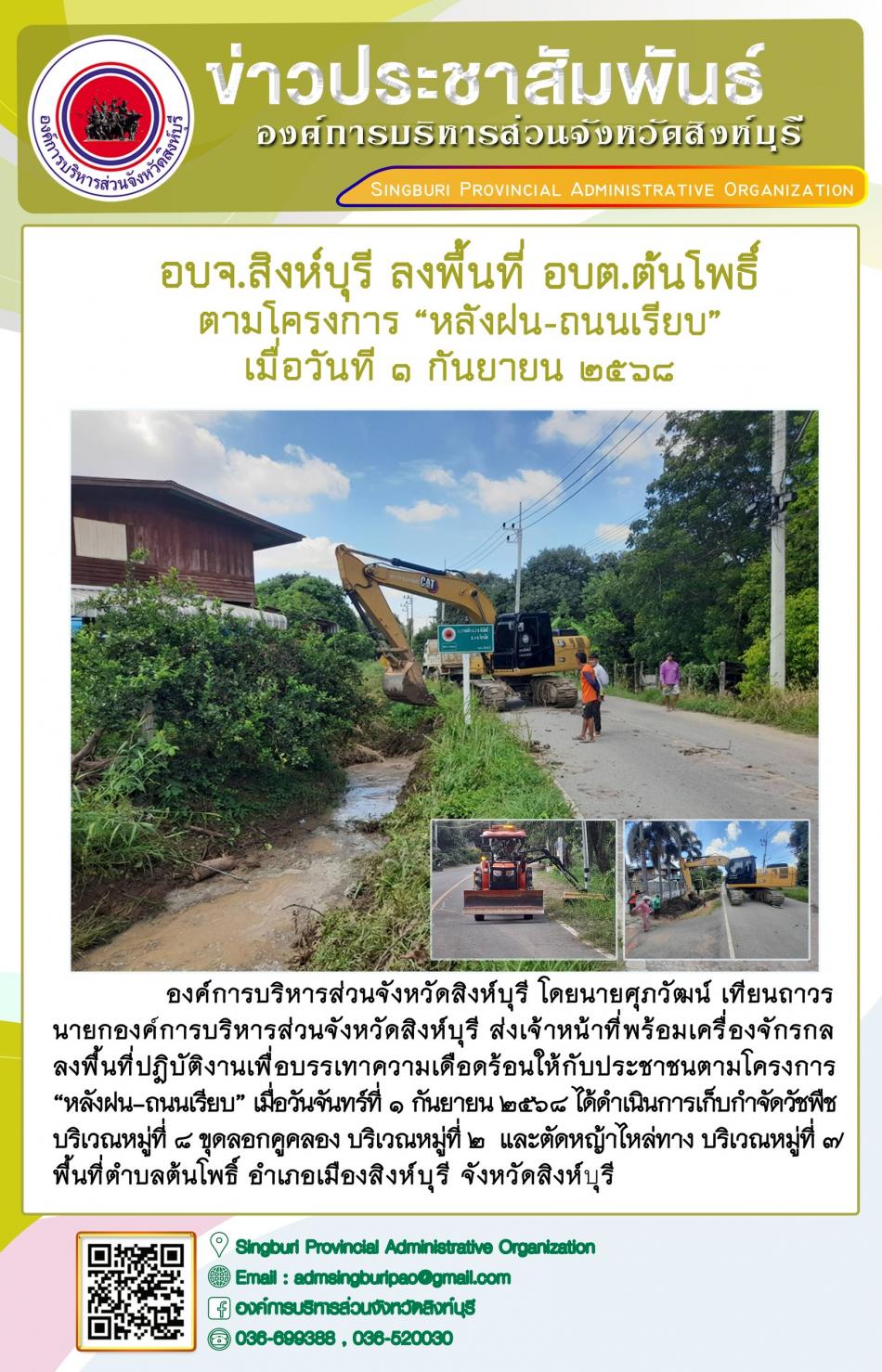 อบจ.สิงห์บุรี ลงพื้นที่ อบต.ต้นโพธิ์ ตามโครงการ “ หลัง ฝน- ถนนเรียบ” [1 กันยายน 2568]