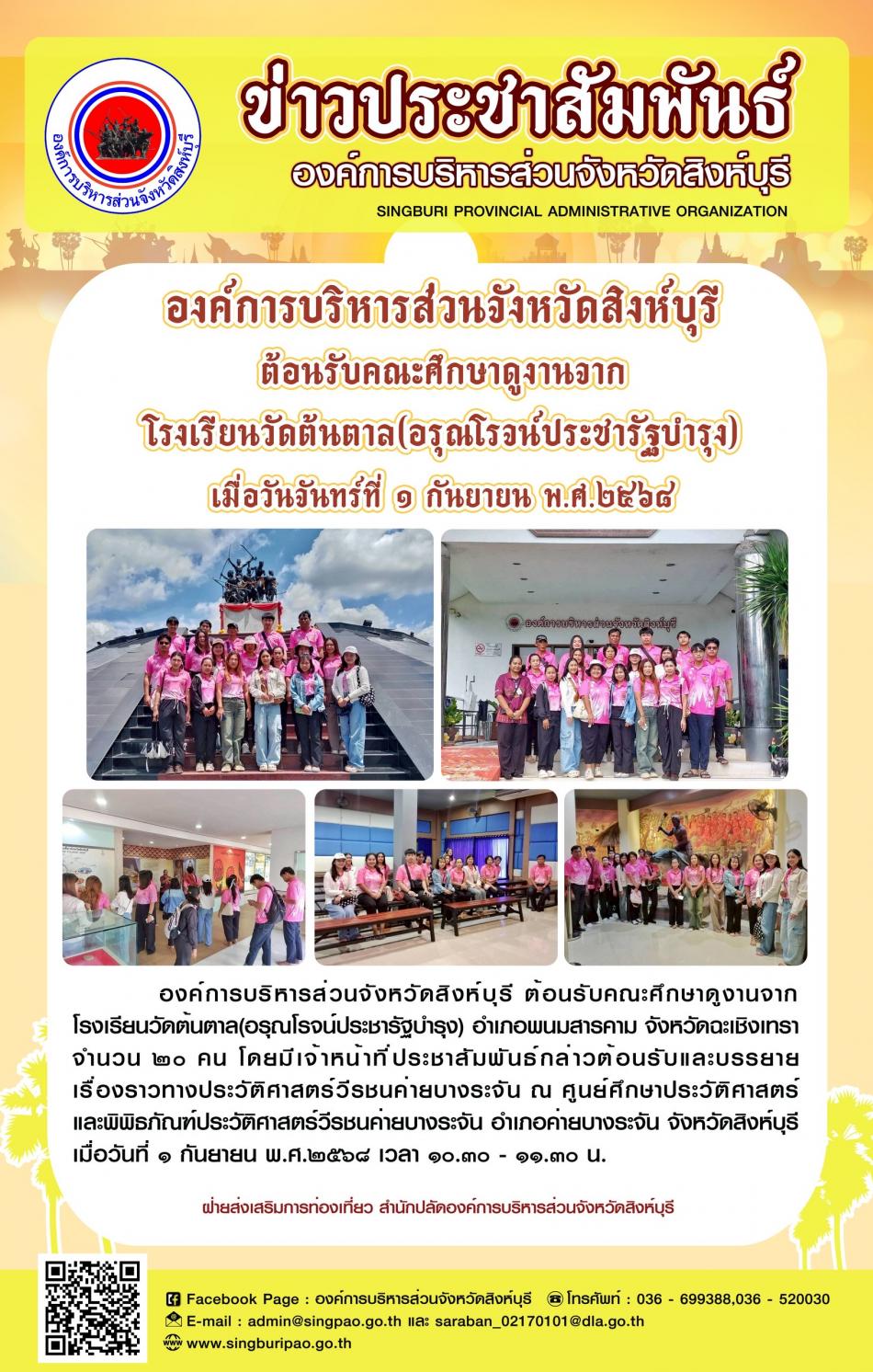 องค์การบริหารส่วนจังหวัดสิงห์บุรี ต้อนรับคณะศึกษาดูงานจากโรงเรียนวัดต้นตาล(อรุณโรจน์ประชารัฐบำรุงอรุณโรจน์ประชารัฐบำรุง) [1 กันยายน 2568]