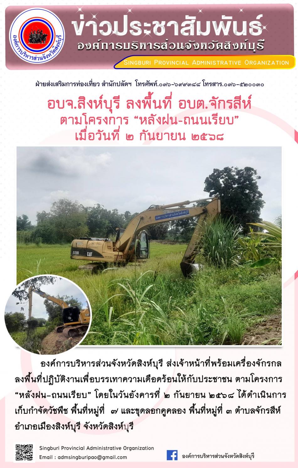อบจ. สิงห์บุรี ลงพื้นที่อบต.จักรสีห์ ตามโครงการ “ หลังฝน-ถนนเรียบ” [2 กันยายน 2568]
