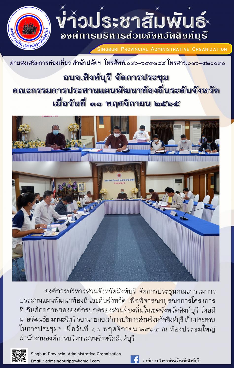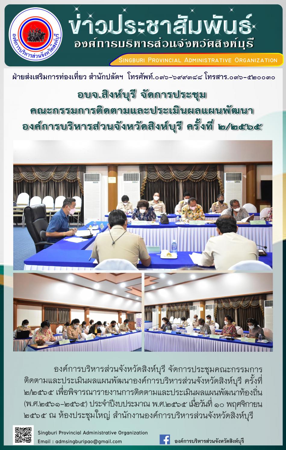 อบจ.สิงห์บุรี จัดการประชุมคณะกรรมการติดตามและแผนพัฒนา องค์การบริหารส่วนจังหวัดสิงห์บุรี ครั้งที่ 2/2565 [10 พฤศจิกายน 2565]