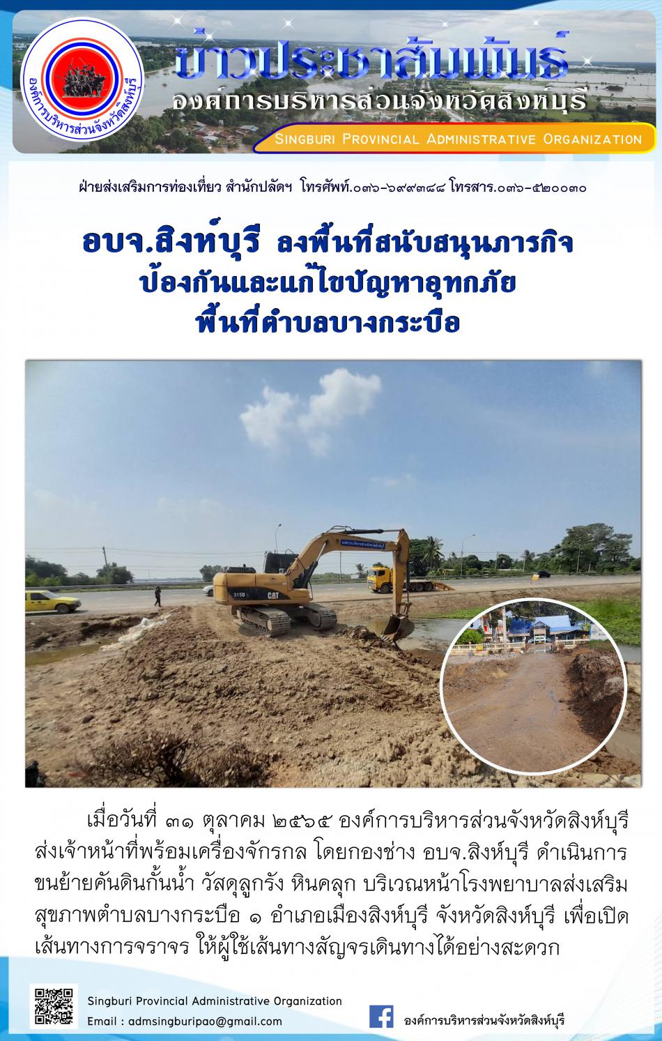 อบจ.สิงห์บุรี ลงพื้นที่สนับสนุนภารกิจป้องกันและแก้ไขปัญหาอุทกภัย บริเวณบางแคนอก [31 ตุลาคม 2565]