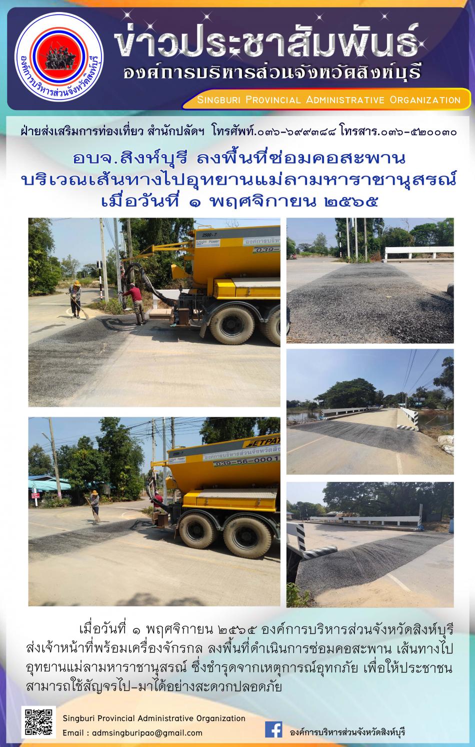 อบจ.สิงหฺ์บุรี ลงพื้นที่ว่อมคอสะพานบริเวณเส้นทางไปอุทยานแม่ลามหาราชานุสรณ์ [1 พฤศจิกายน 2565]