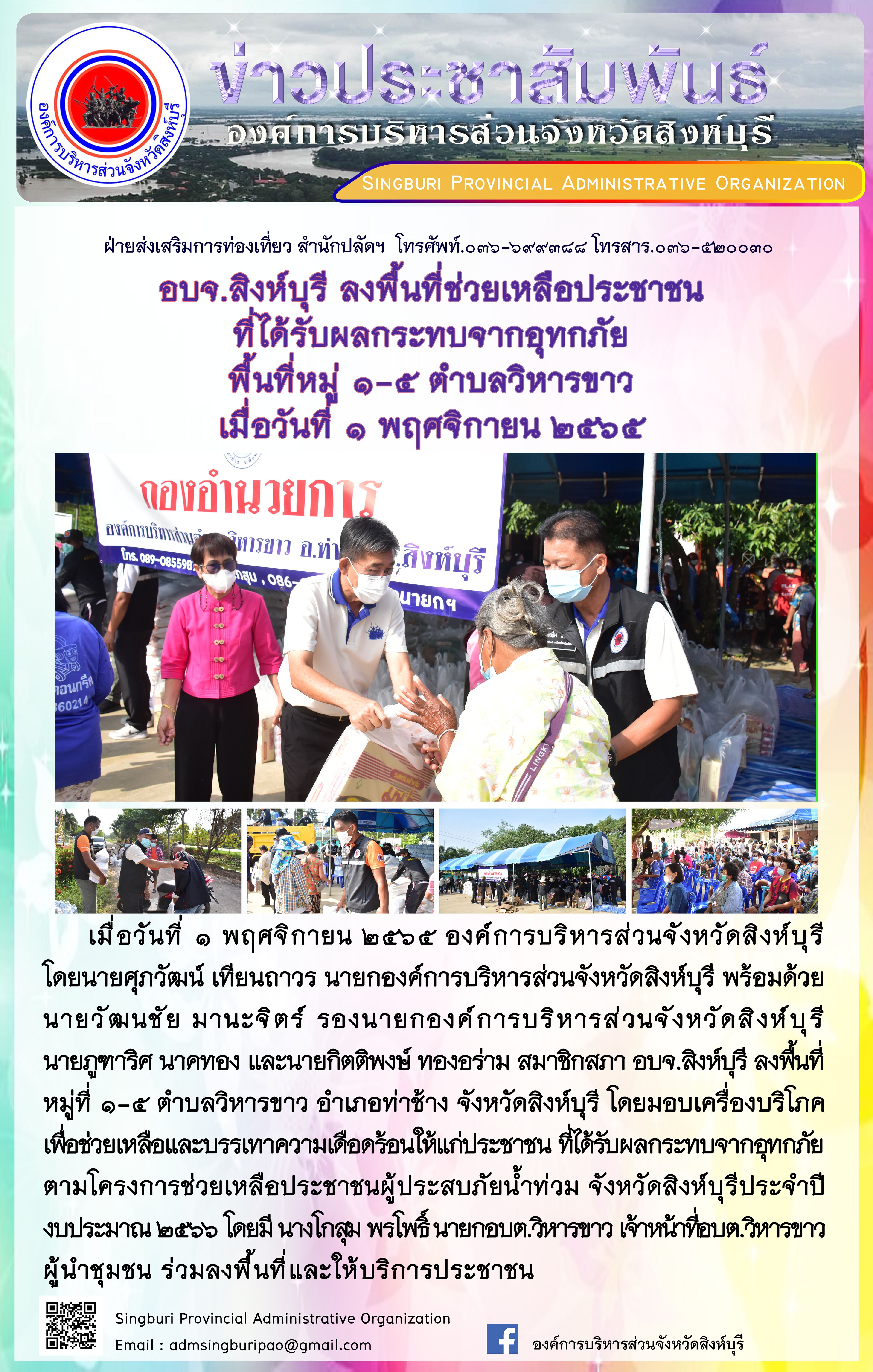 อบจ3.สิงห์บุรี ลงพื้นที่ช่วยเหลือประชาชนที่ได้รับผลกระทบจากอุกภัย พื้นทีตำบลวิหารขาว [1 พฤศจิกายน 2565]