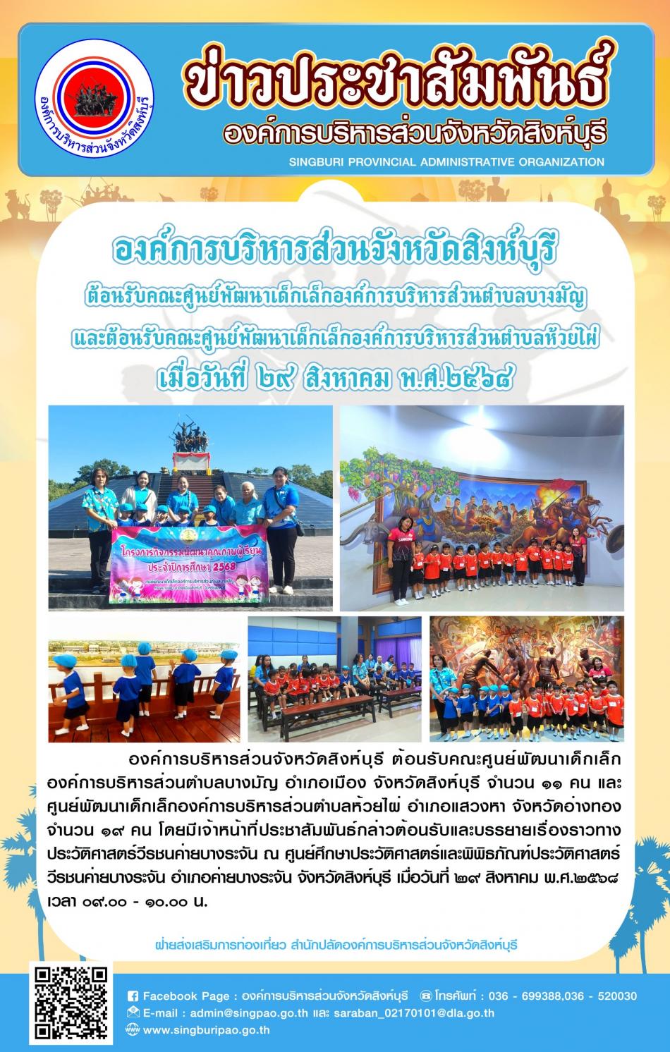 องค์การบริหารส่วนจังหวัดสิงห์บุรี ต้อนรับคณะศูนย์พัฒนาเด็กเล็กตำบลไม้ดัด [28 สิงหาคม 2568]