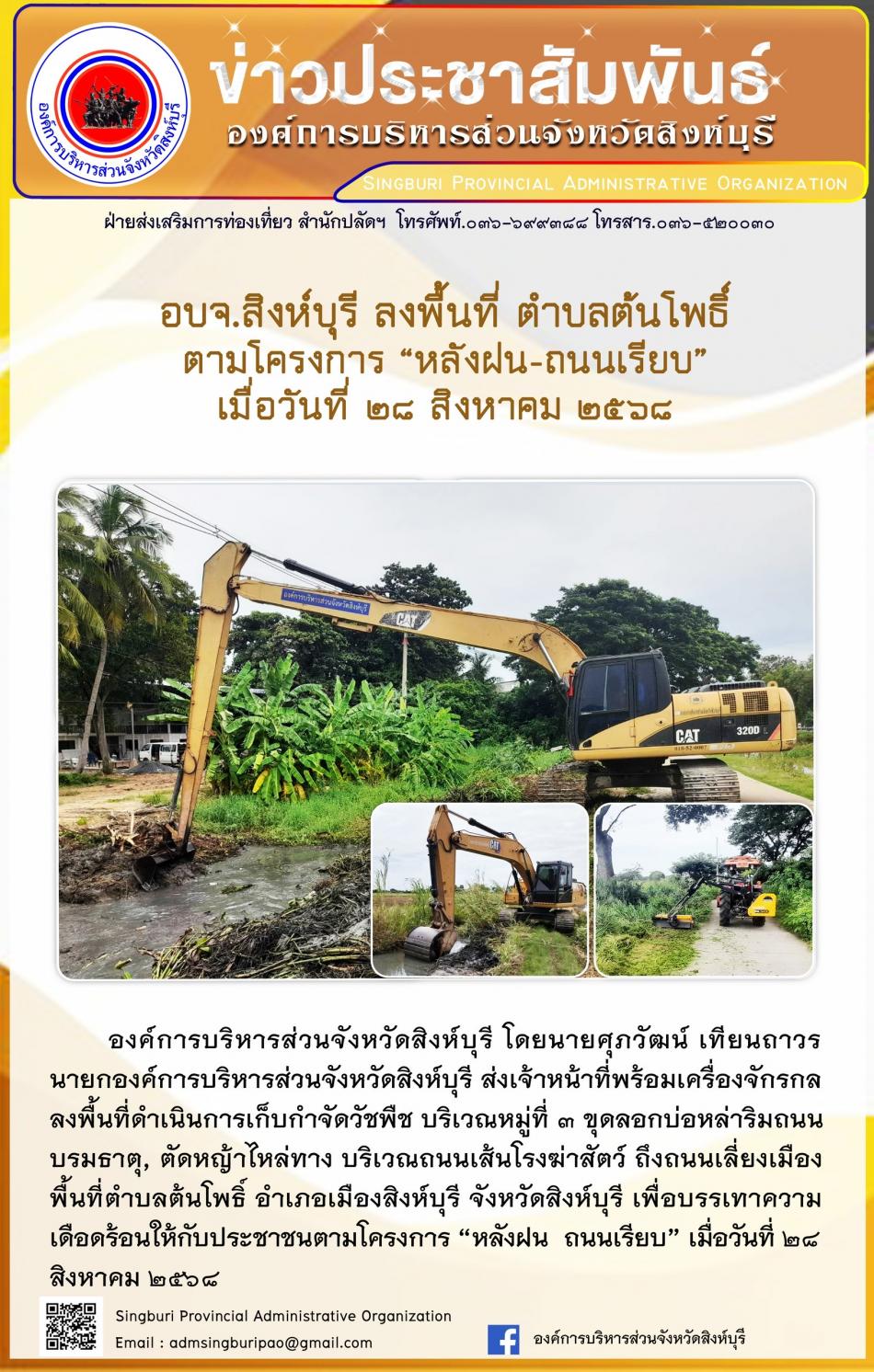 อบจ. สิงห์บุรี ลงพื้นที่ ตำบลต้นโพธิ์ ตามโครงการ “ หลังฝน-ถนนเรียบ” [28 สิงหาคม 2568]