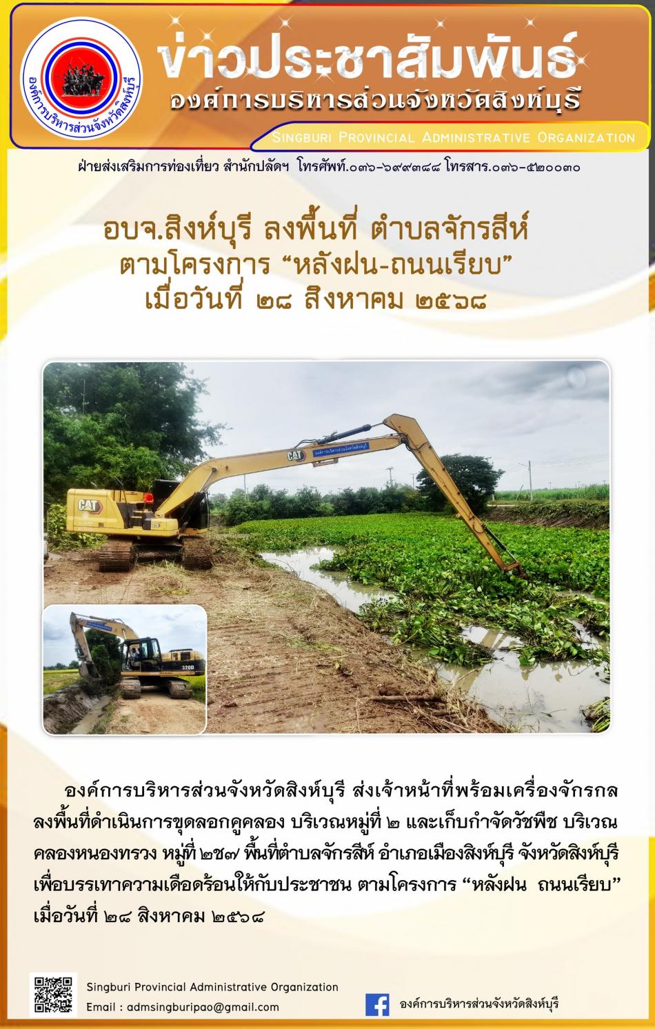 อบจ.สิงห์บุรี ลงพื้นที่ ตำบลจักรสีห์ ตามโครงการ “หลังฝน-ถนนเรียบ” [28 สิงหาคม 2568]