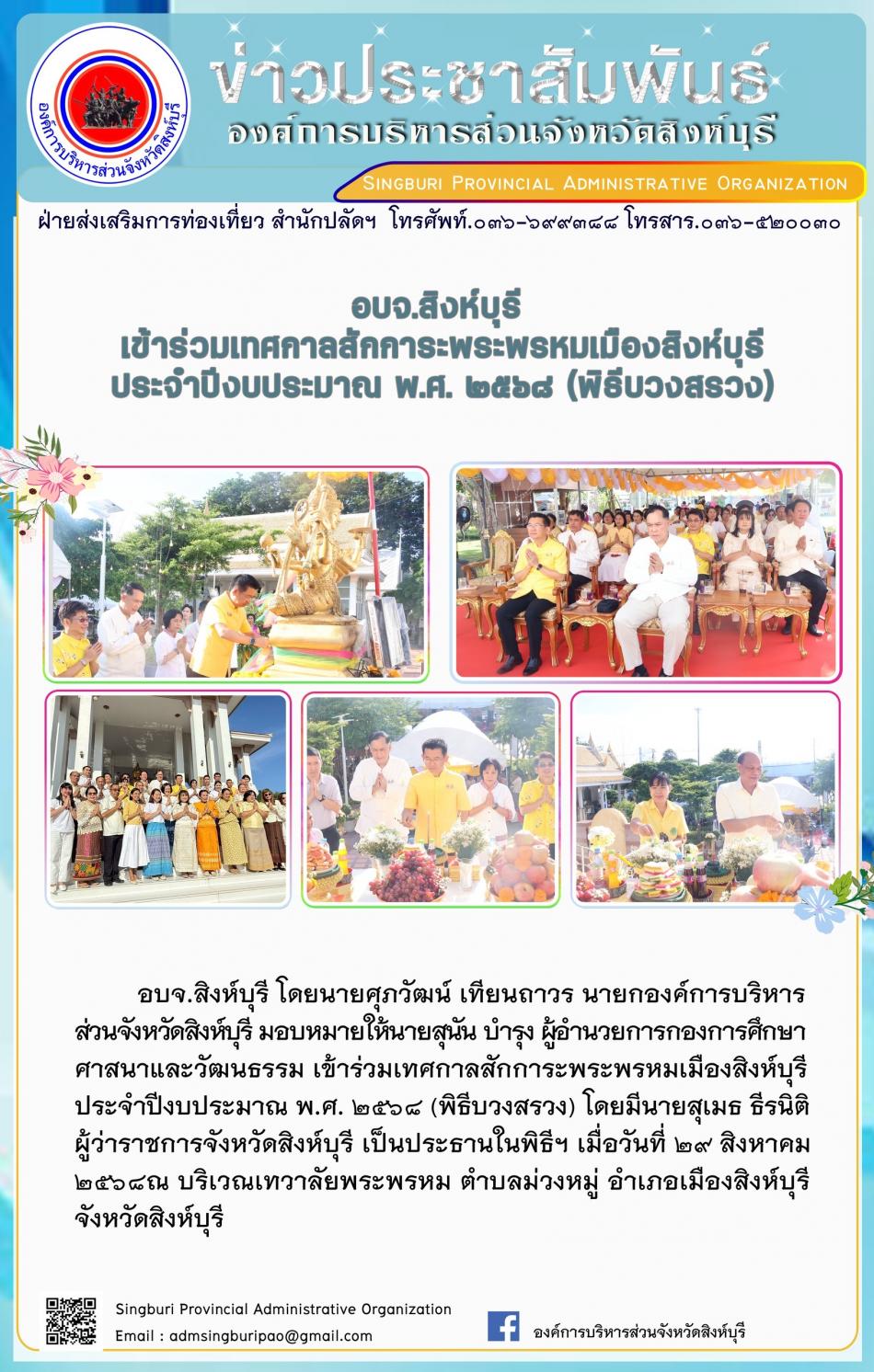 อบจ.สิงห์บุรี เข้าร่วมเทศกาลสักการะพระพรหมเมืองสิงห์บุรี ประจำปีงบประมาณ 2568 พิธีพวงสรวง) [29 สิงหาคม 2568]