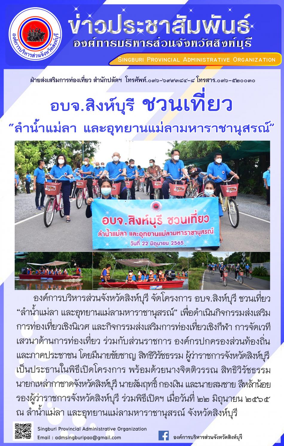 อบจ.สิงห์บุรี ชวนเที่ยว "ลำน้ำแม่ลา และอุทยานแม่ลามหาราชานุสรณ์ [22 มิถุนายน 2565]