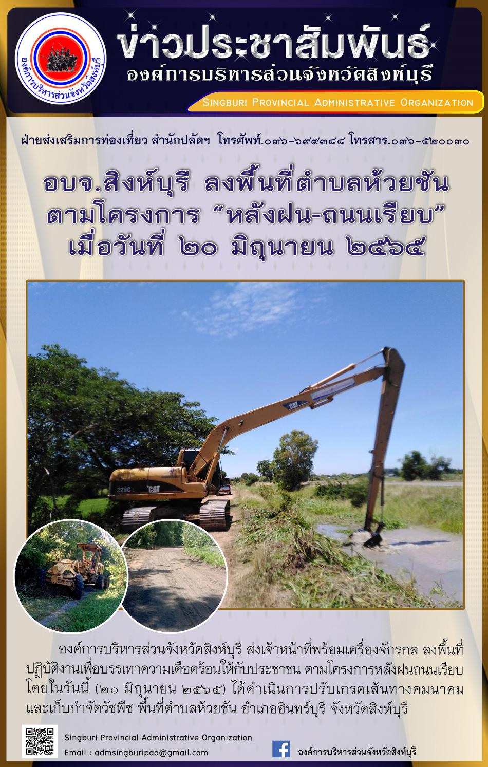 อบจ.สิงห์บุรี ลงพื้นที่ตามโครงการ "หลังฝนถนนเรียบ" [20 มิถุนายน 2565]