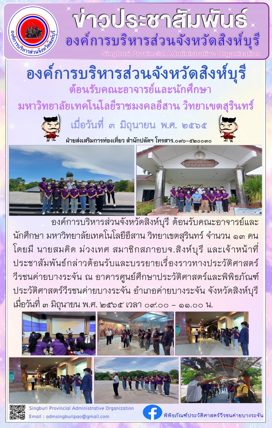 องค์การบริหารส่วนจังหวัจสิงห์บุรี ต้อนรับคณะอาจารย์และนักศึกษา มหาวิทยาลัยเทคโนโลยีราชมงคลอีสาน วิทยาเขตสุรินทร์ [3 มิถุนายน 2565]
